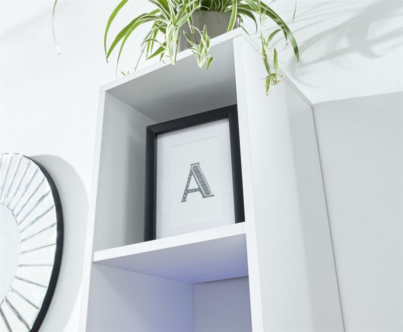 4-Tier Wall Mounted Shelf Unit Bookcase W/ LED Light Storage Display Rack White