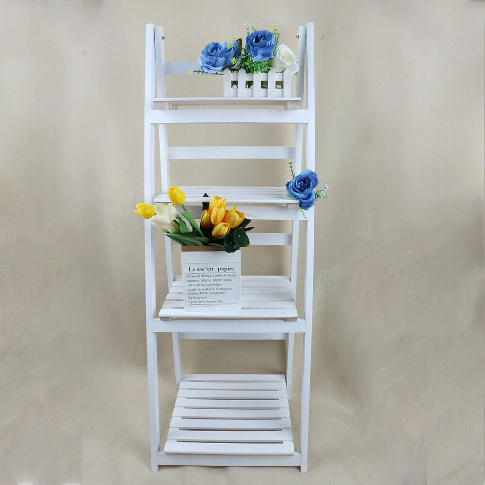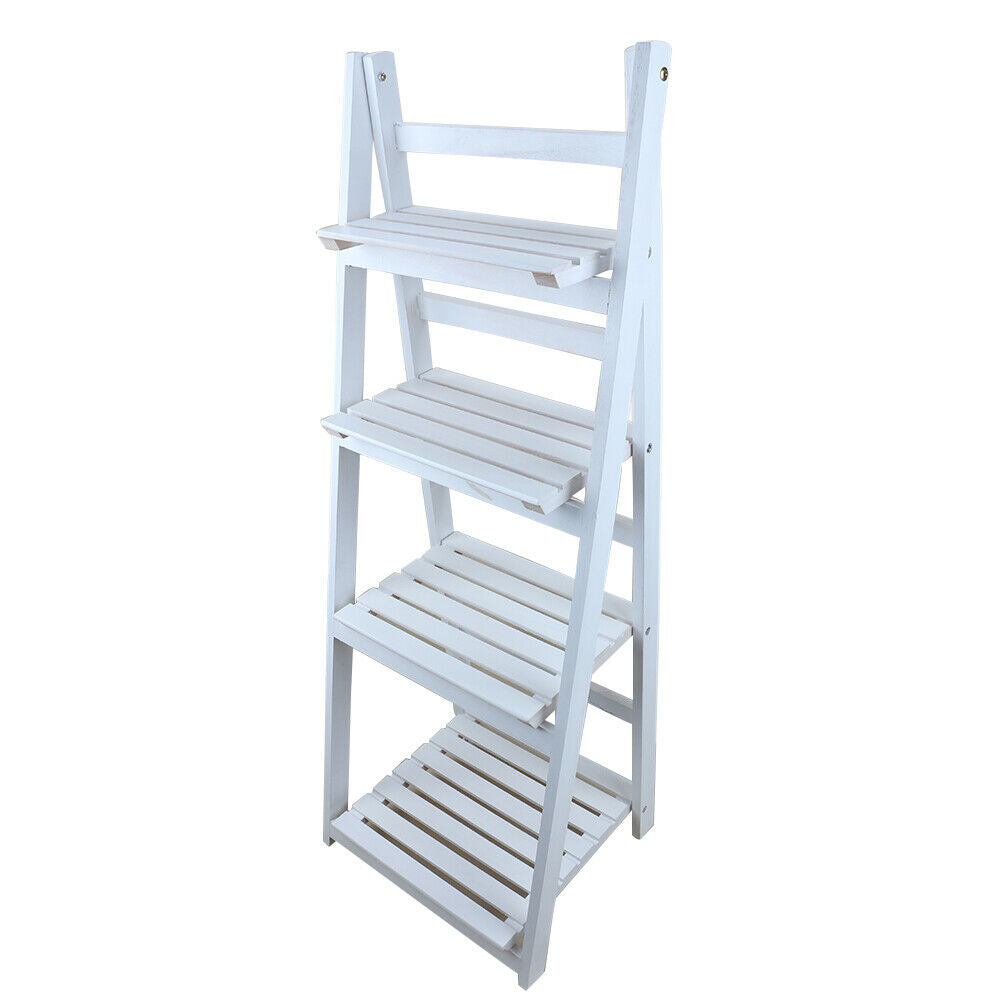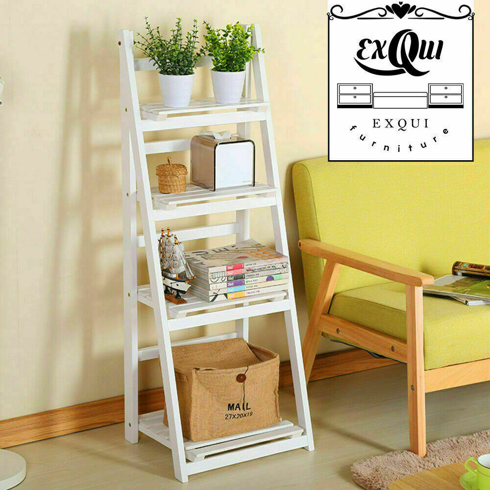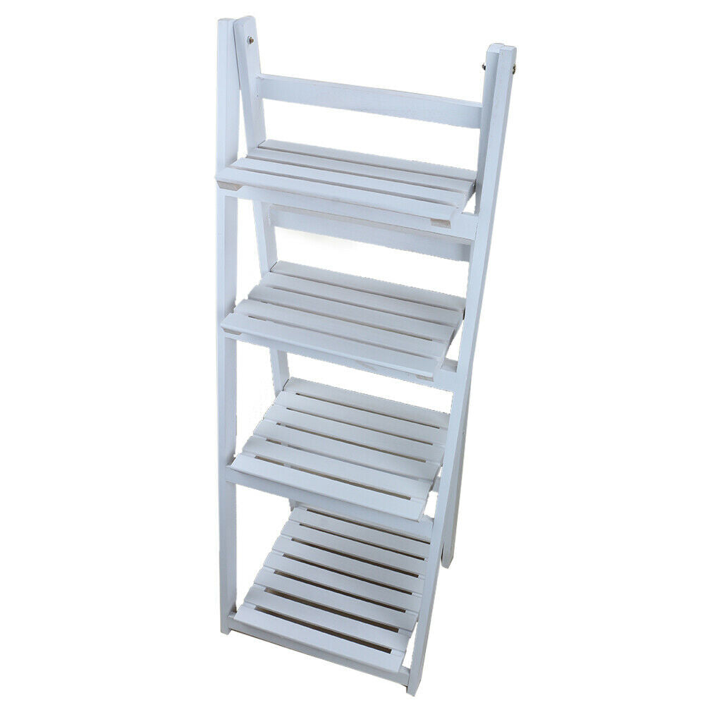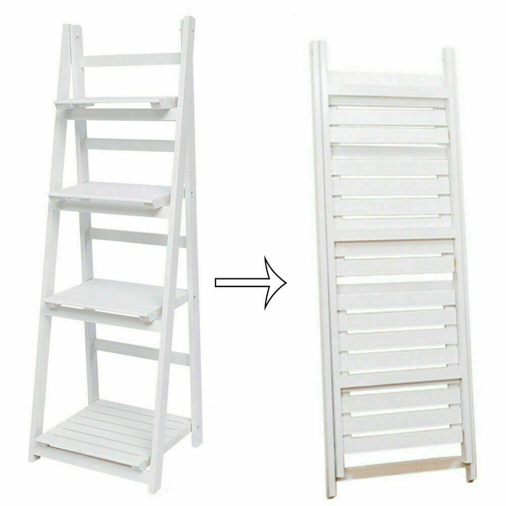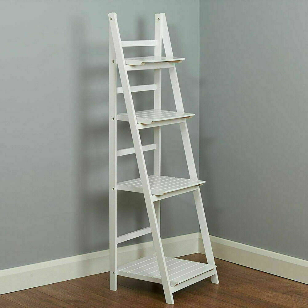 4 Tier White Ladder Shelving Unit Display Stand Book Shelf Wall Rack Storage
