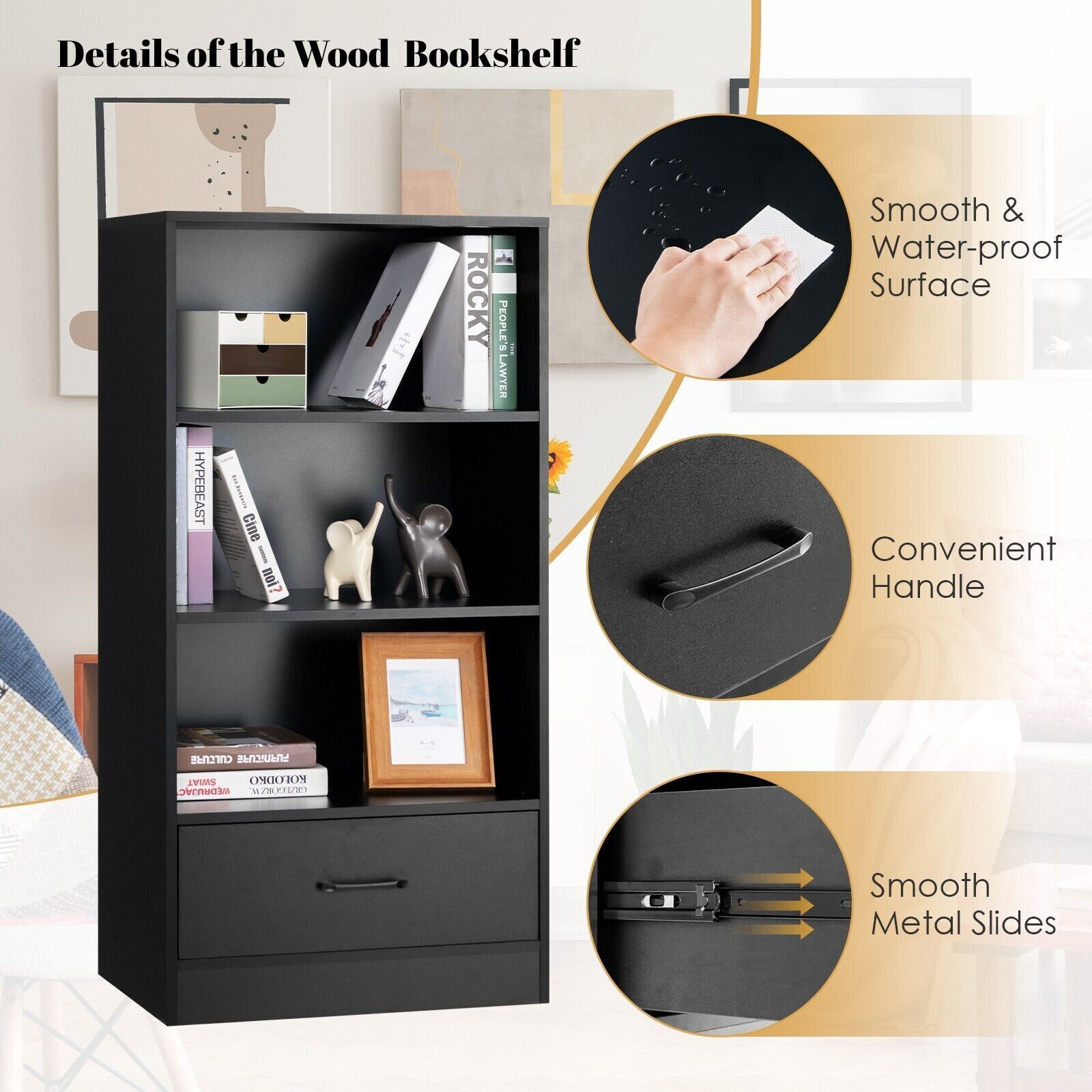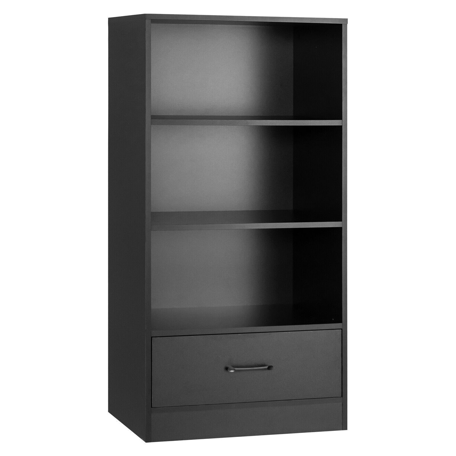 4 -tier Wooden Bookcase Storage Rack Open Display Shelf w/ 1 Drawer Black
