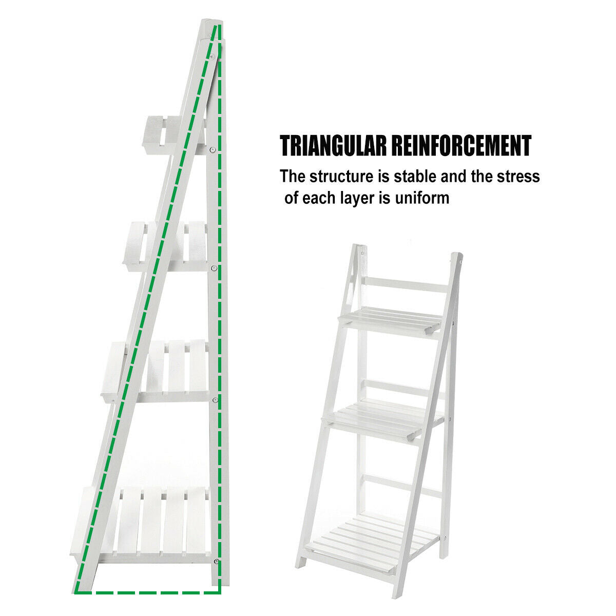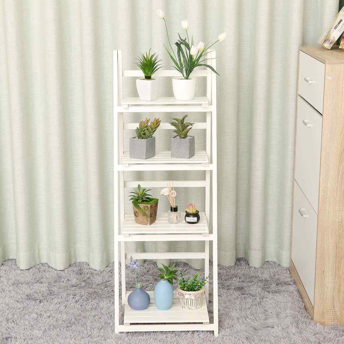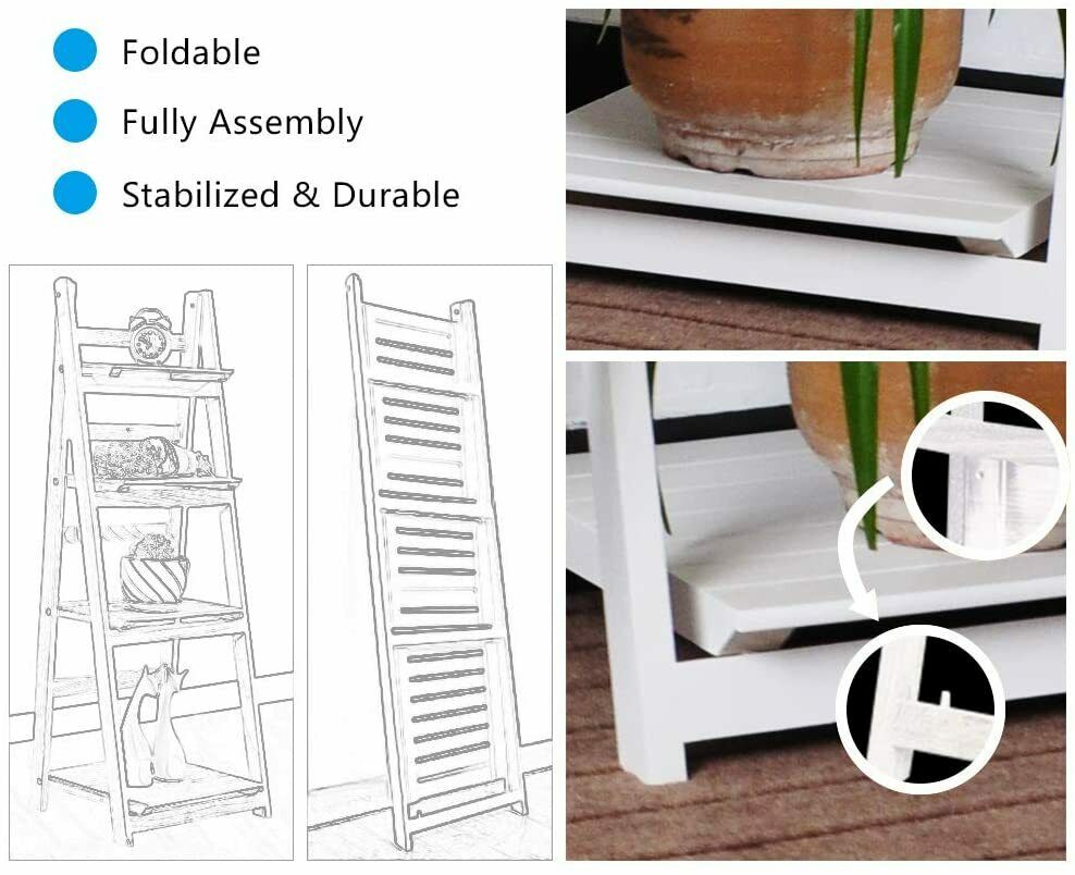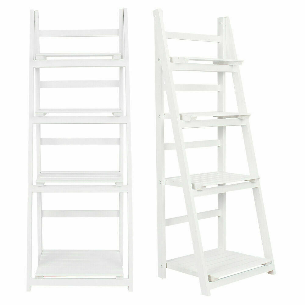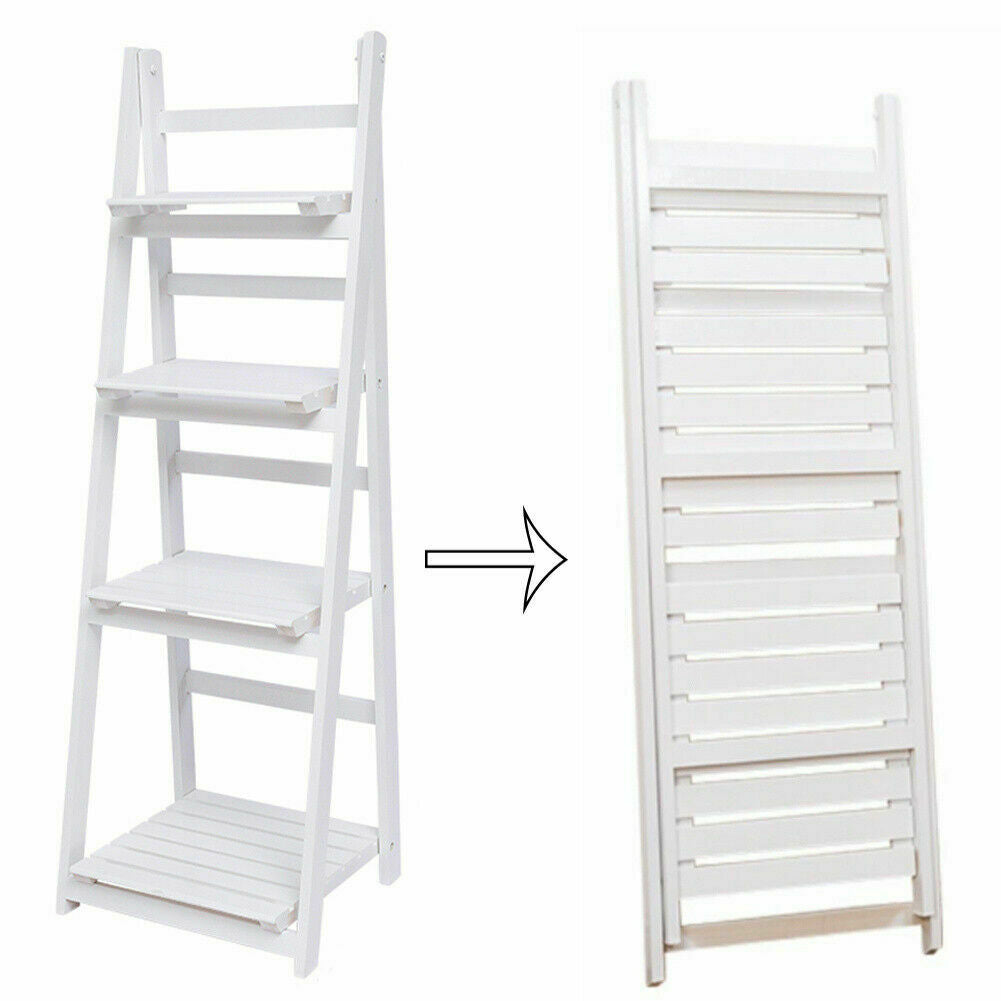 4 Tier Wooden Ladder Bookcase Shelving Shelf Unit Plant Flower Display Rack Home