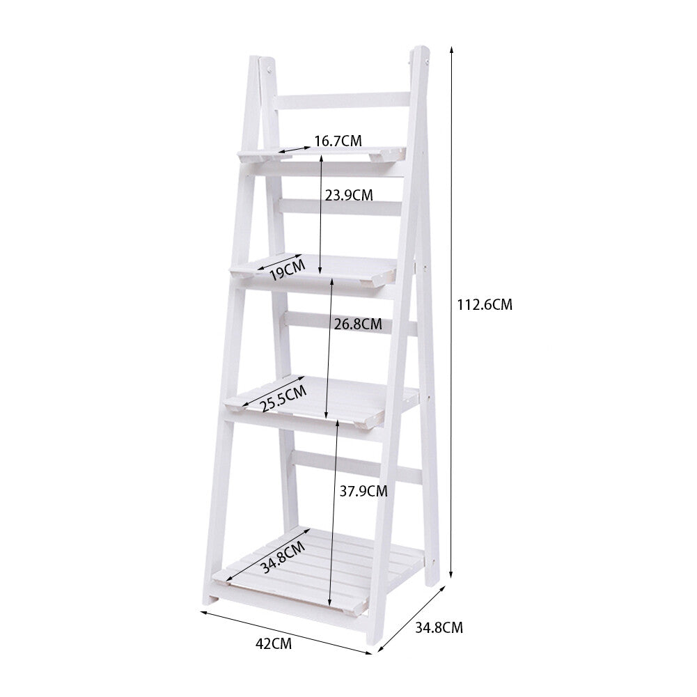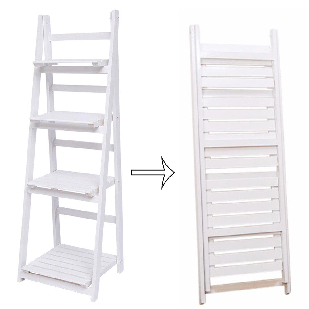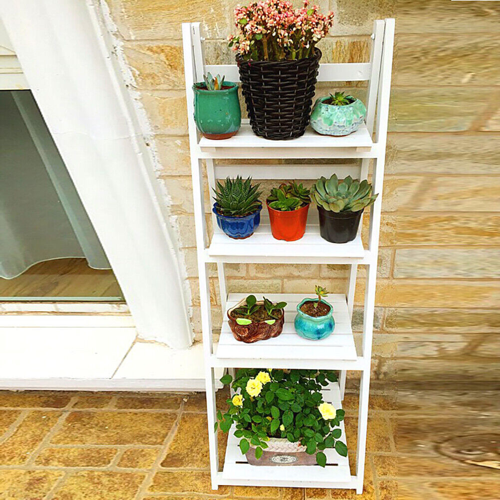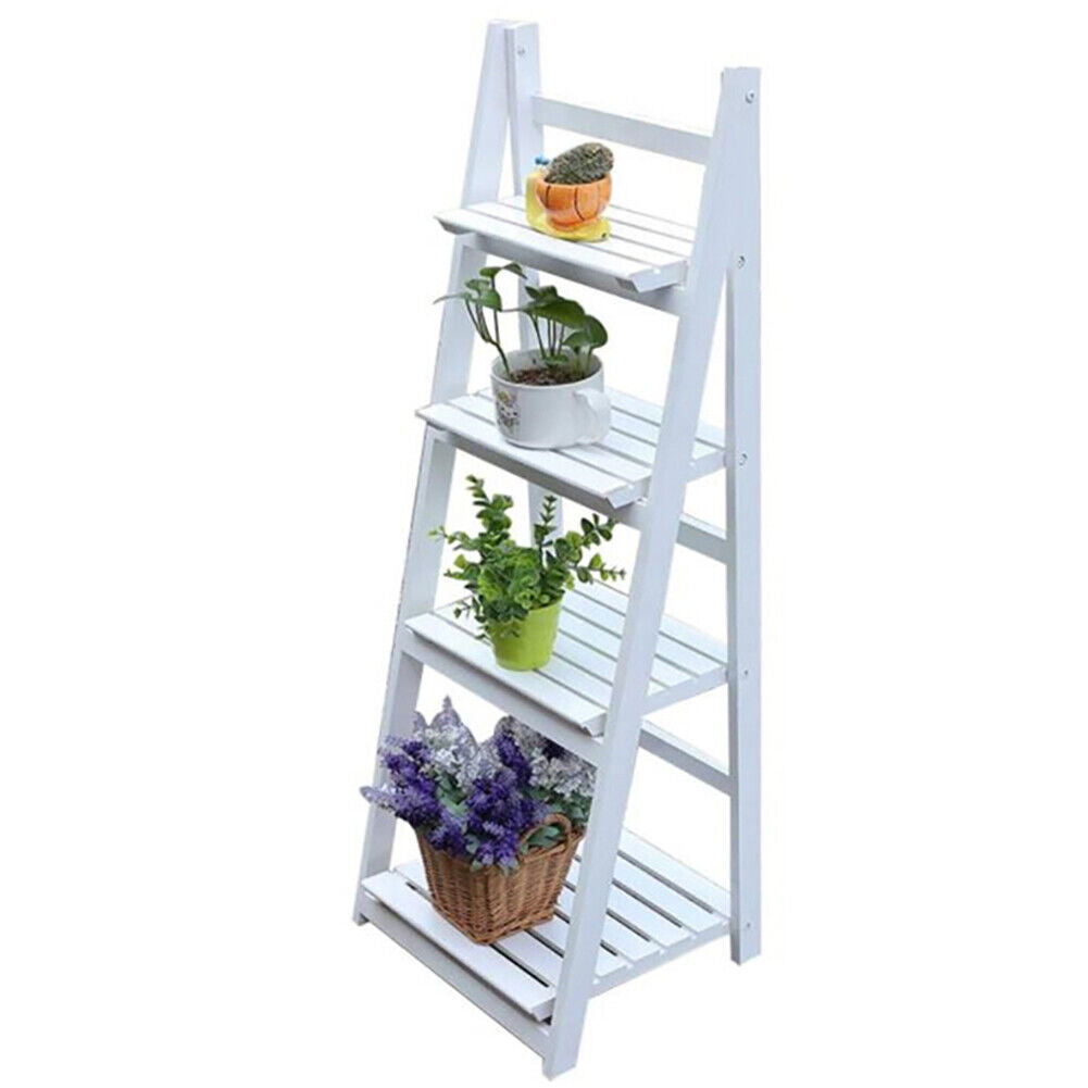 4 Tier Wooden Ladder Shelf Plant Flower Pot Display Stand Bookcase Storage Rack