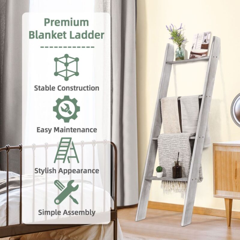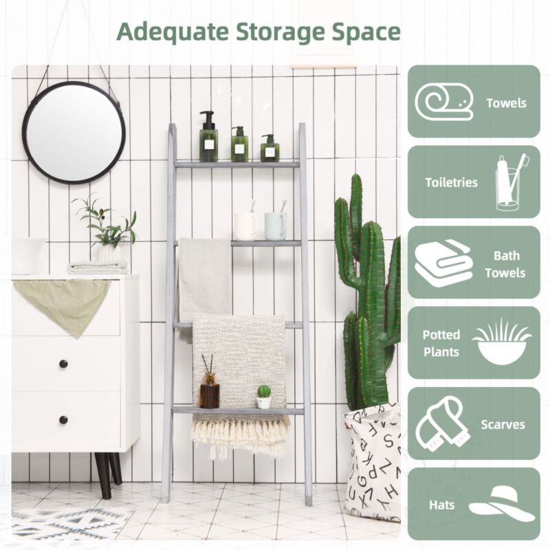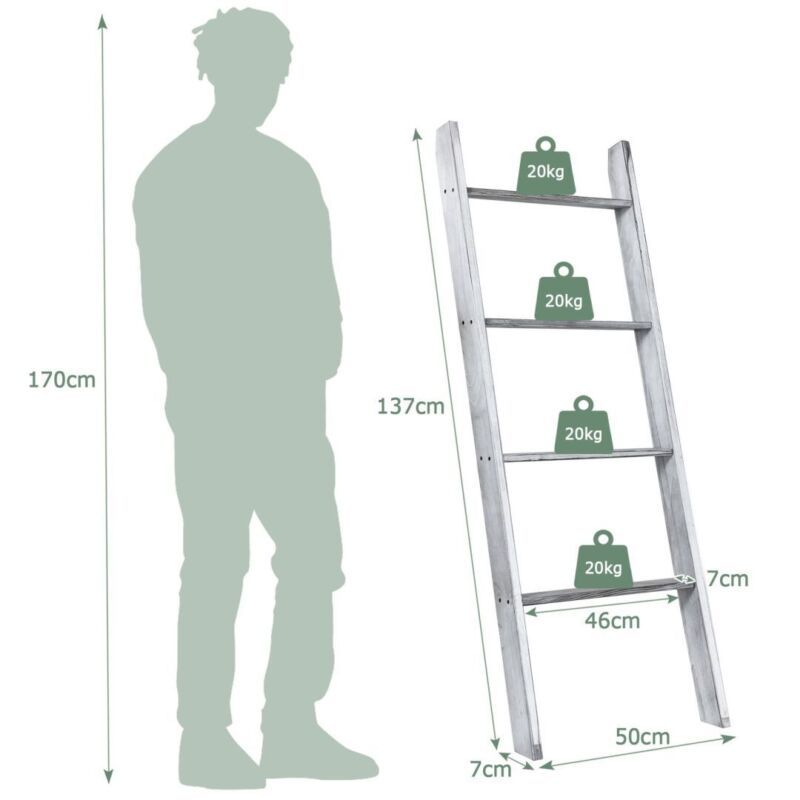 4-Tier Wooden Ladder Towel Rack Holder Wall Leaning Blanket Shelf Stand Bathroom