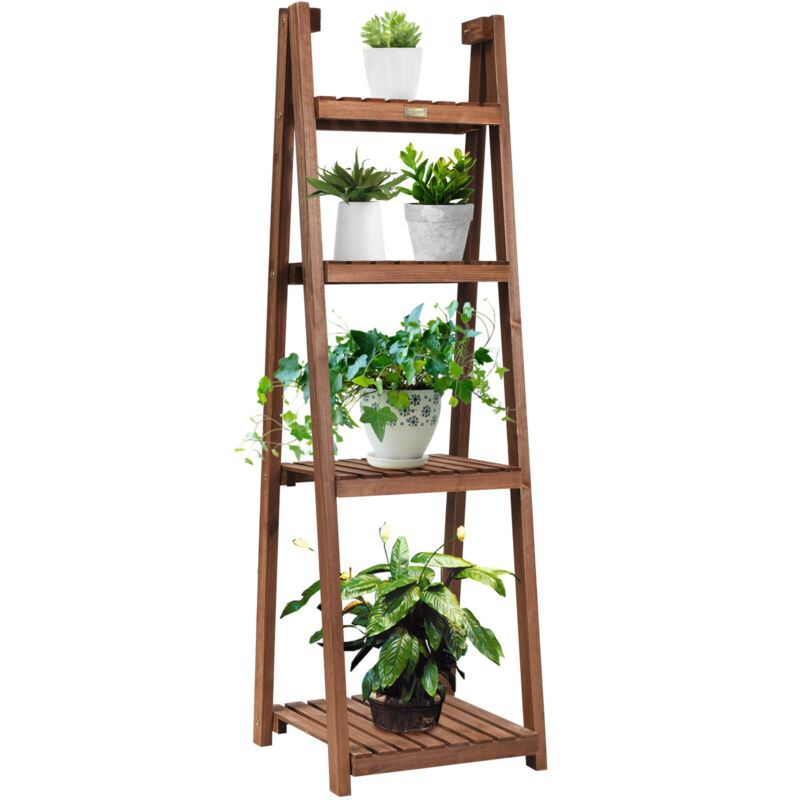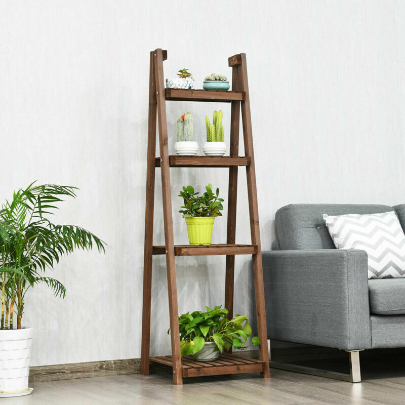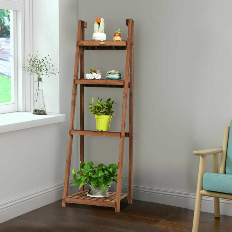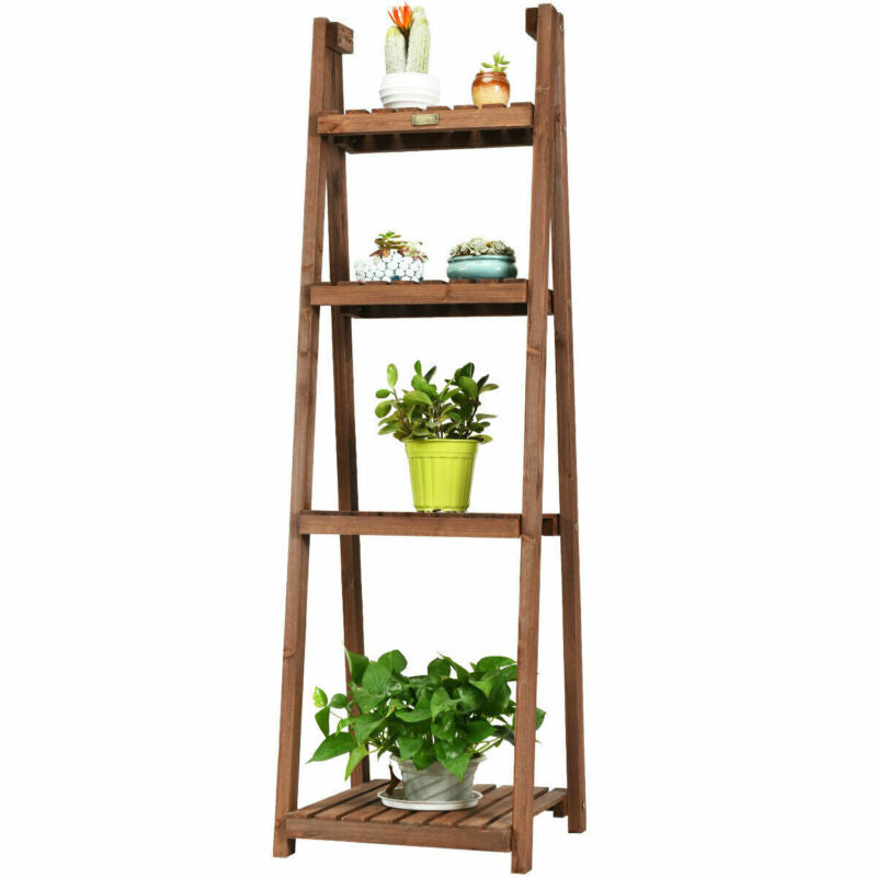 4 Tier Wooden Plant Stand Folding Flower Shelf Display Ladder Free Standing