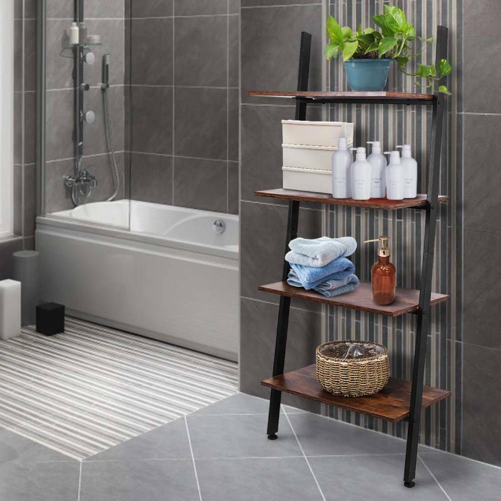 4 Tier Wooden Wall Leaning Ladder Shelf Display Unit Bookcase Storage Shelves