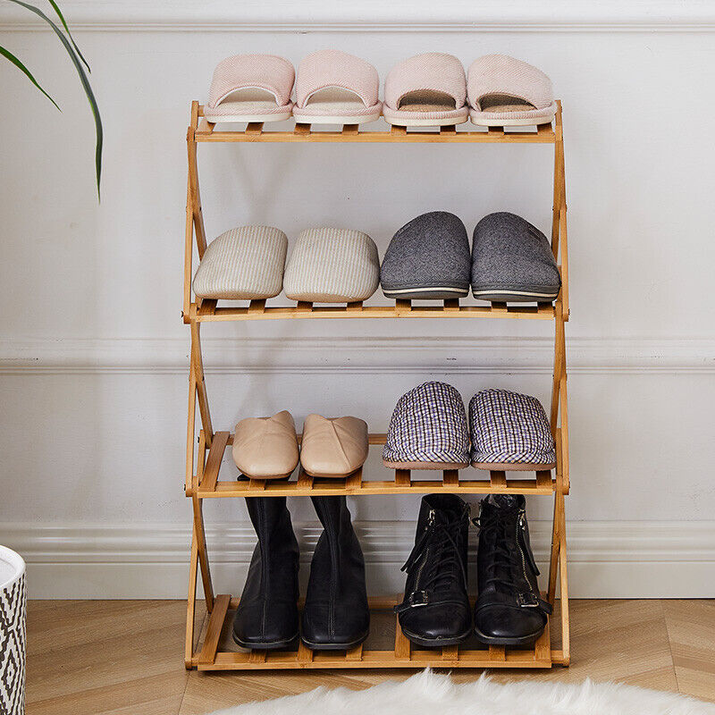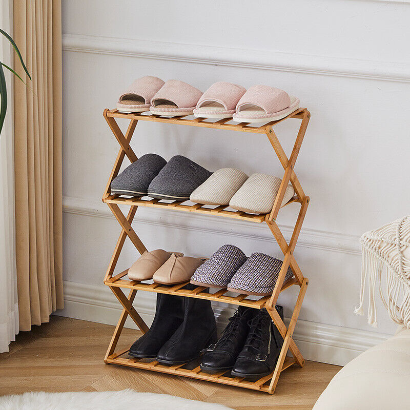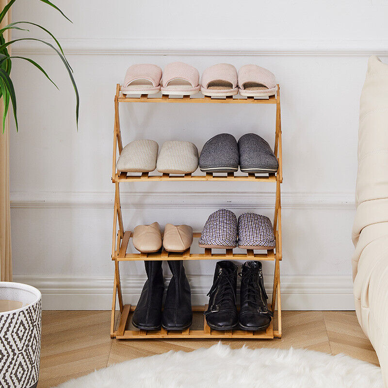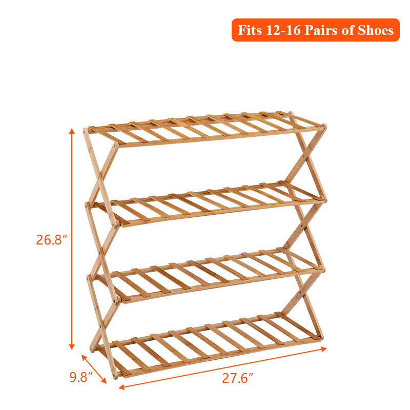 4 Tiers Bamboo Shoe Rack Folding Durable Shoe Shelf Organizer Free Standing