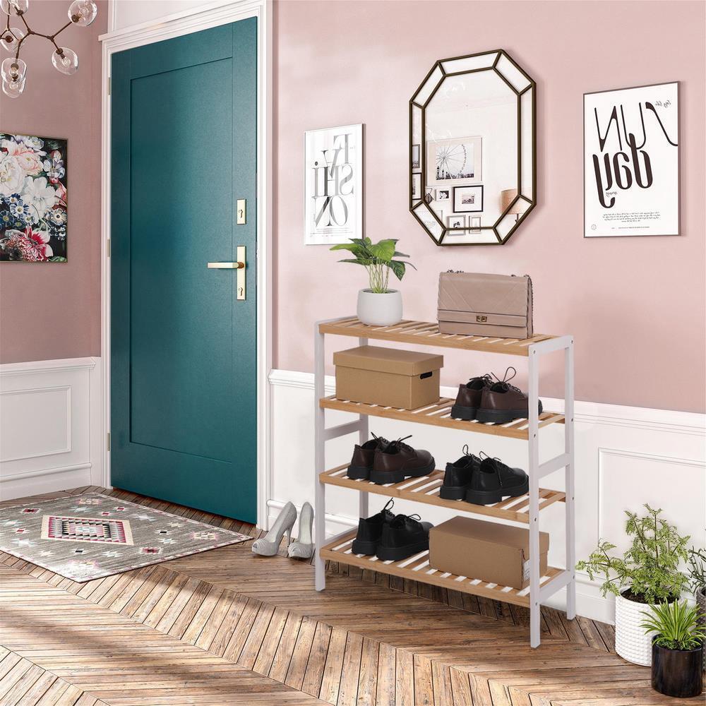4 Tiers Bamboo Shoe Rack Storage Shelf Display Stand Organiser Unit Cabinet