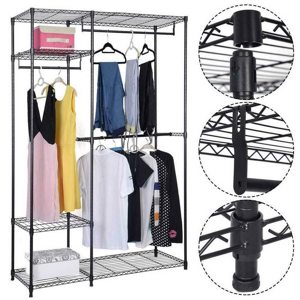 4 Tiers Clothes Rail Rack Hanging Display Stand Shoe Storage Shelves Sturdy Home