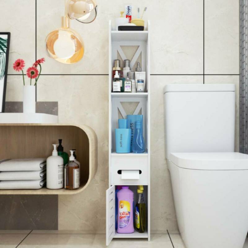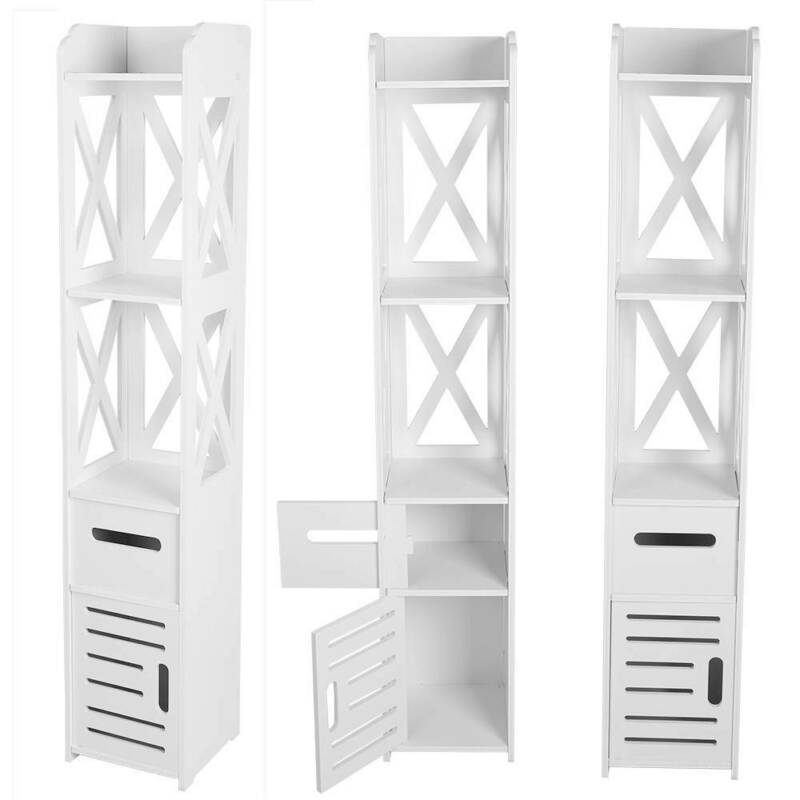 4 Tiers Modern Bathroom Furniture Cabinet Wood Slim Shelf Cupboard Storage Unit