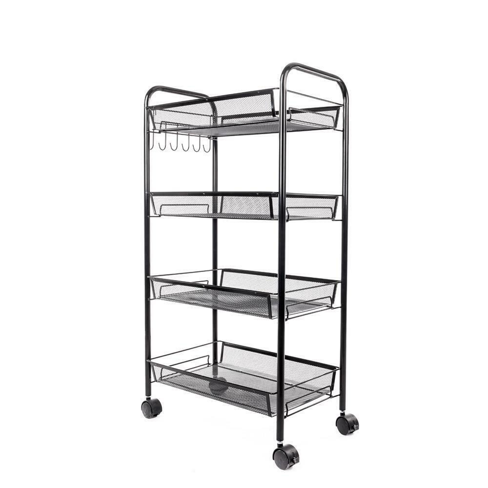 4 Tiers Rolling Cart Storage Trolley on Wheels Compact Kitchen Trolley