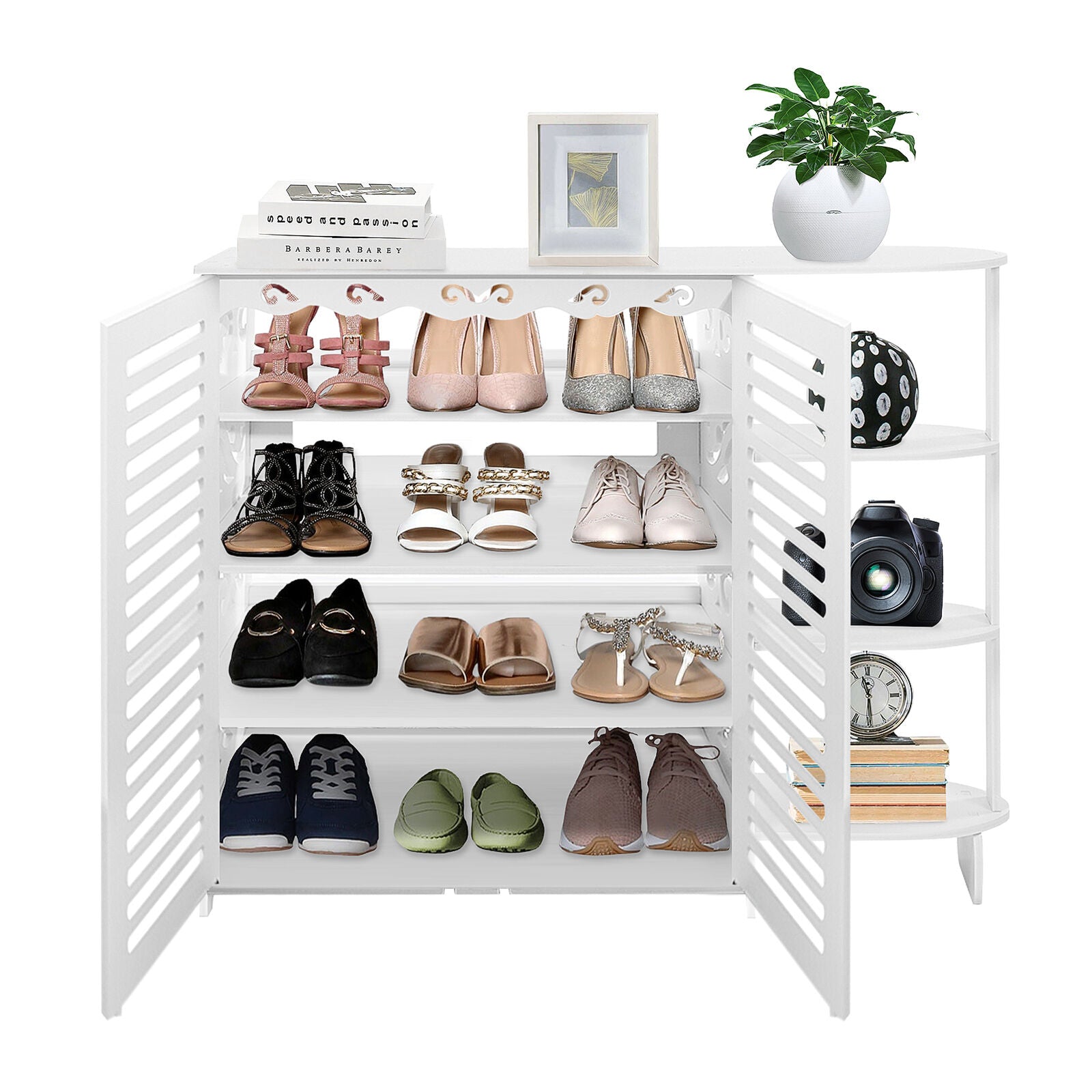 4 Tiers Shoes Rack Display Stand Shoe Storage Shelf Organiser Unit Cabinet Doors