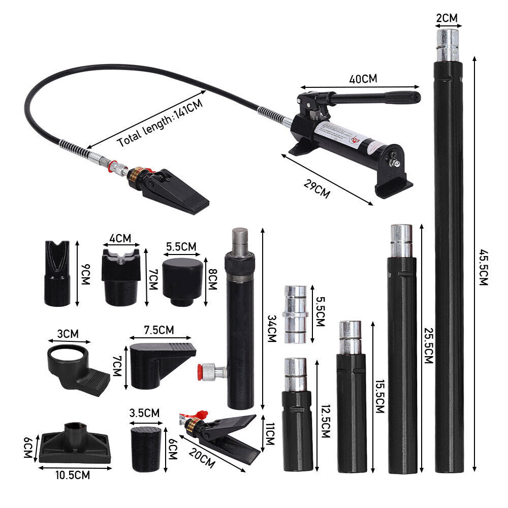 4 Ton Hydraulic Power Jack Air Pump Lift Ram Body Frame Repair Kit 125mm Stroke
