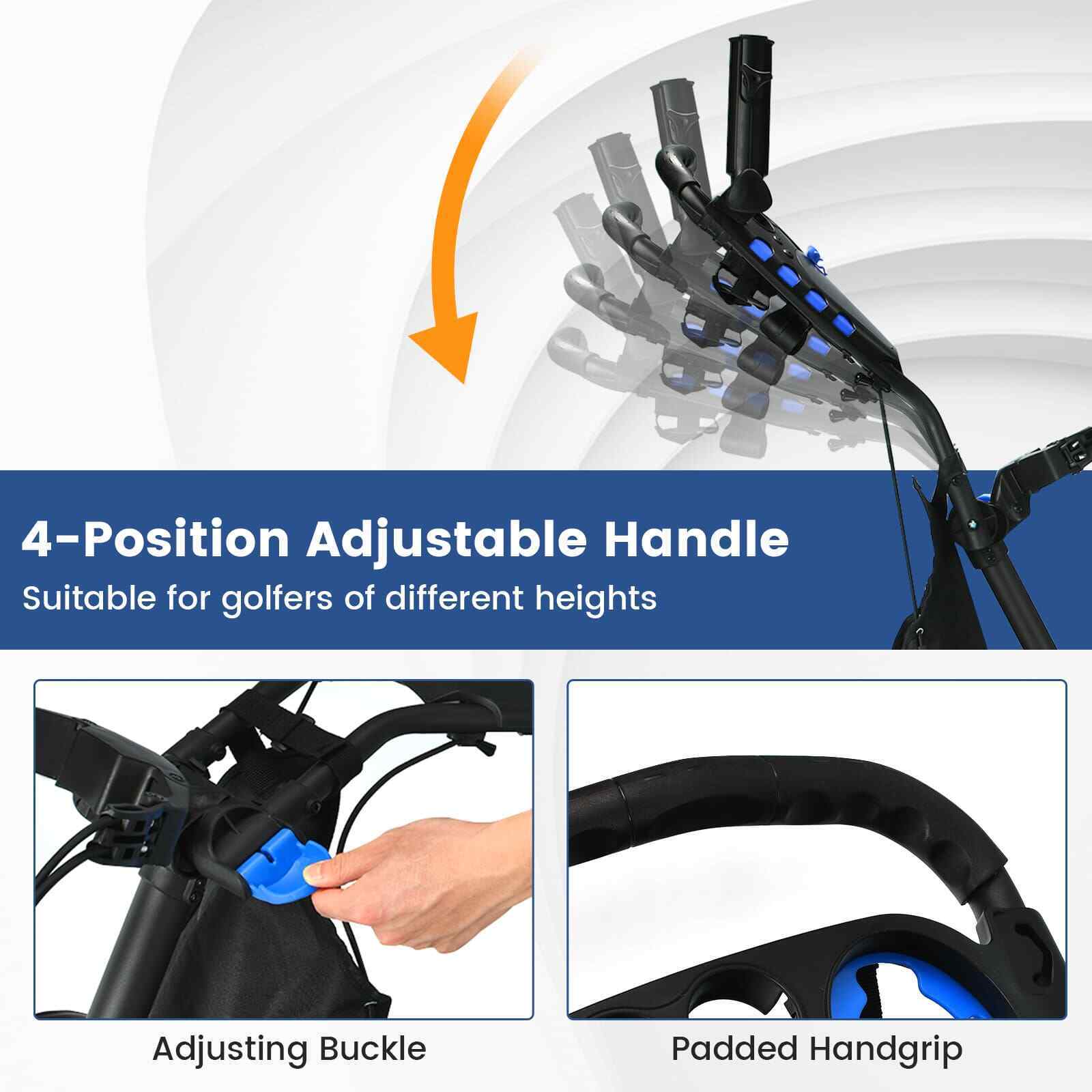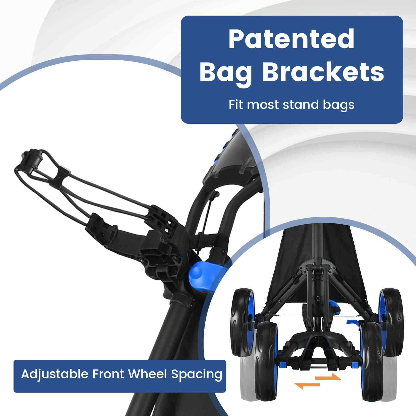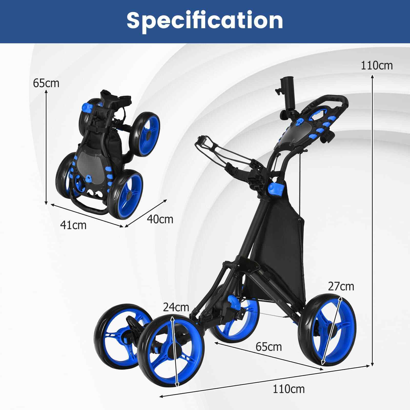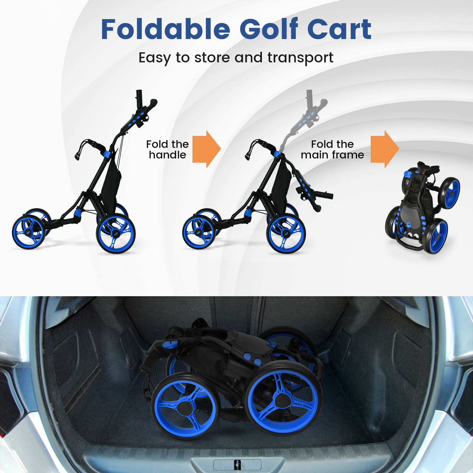 4-wheel Golf Trolley Push and Pull Golf Trolley with Scoreboard Bag-Blue