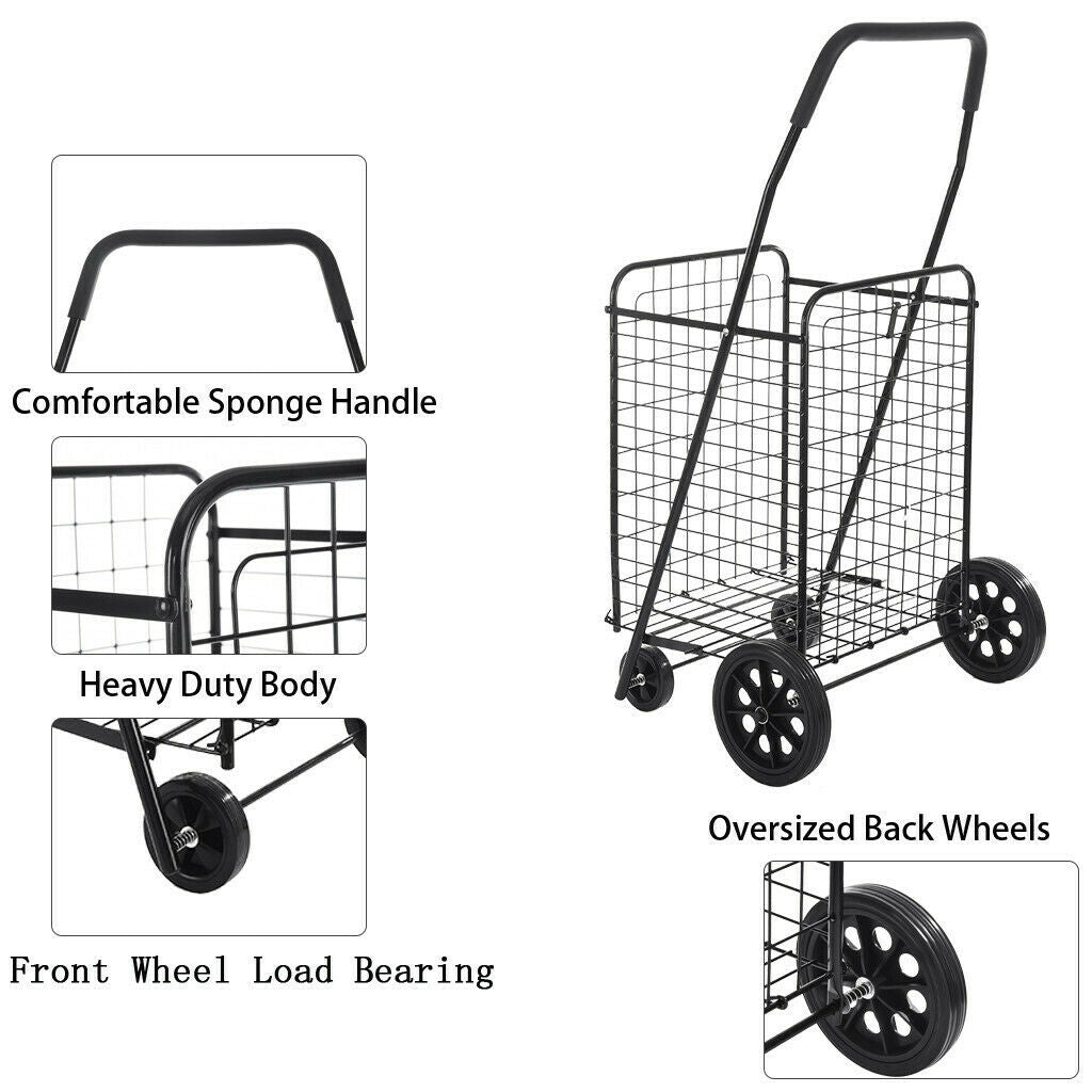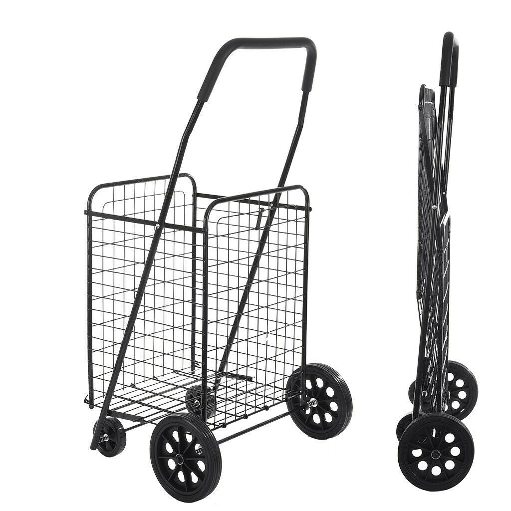 4 Wheel Shopping Trolley Large Capacity Lightweight Frame Strong Folding Cart UK
