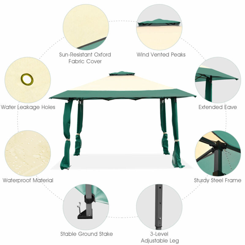 Condition: New: A brand-new, unused, unopened and undamaged item in original retail packaging (where packaging ... Features: Adjustable Height MPN: OP70811GN Item Width: 395 cm Frame Material: Steel Item Height: 267-283cm Colour: Green Assembly Required: Yes Brand: Costway Item Depth: 395 cm Type: Gazebo