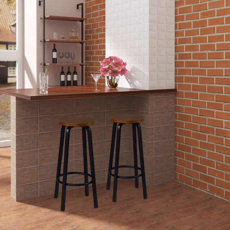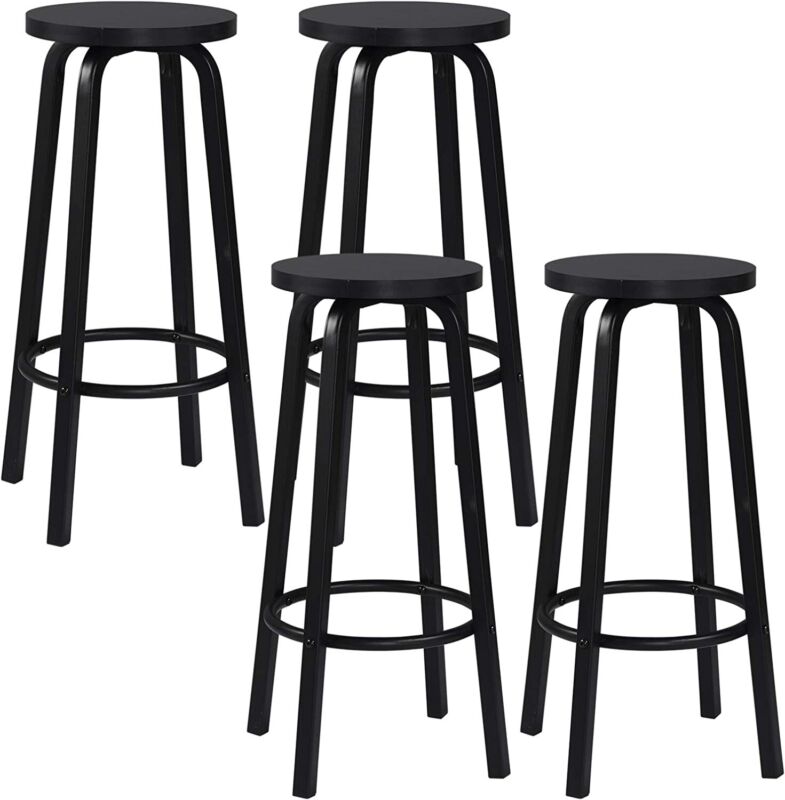4 x Bar Stools Retro Breakfast Kitchen Bar High Chairs MDF Seat Metal Legs