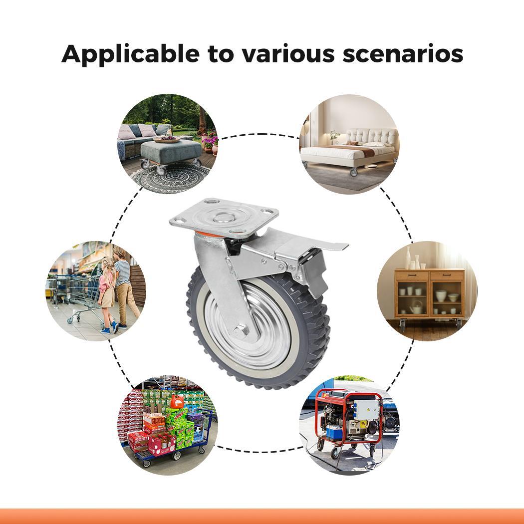 4 x Heavy Duty 200mm Swivel Castor Wheel 1000KG Trolley Furniture Caster Rubber