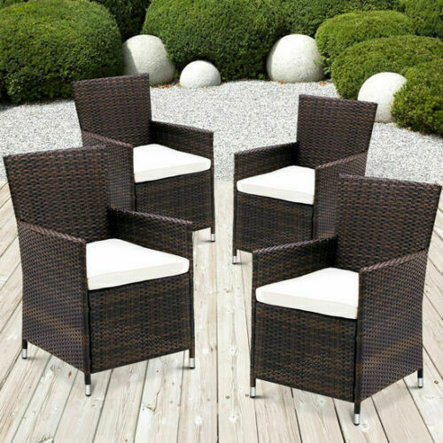 4 X RATTAN GARDEN FURNITURE DINING CHAIRS SET OUTDOOR PATIO