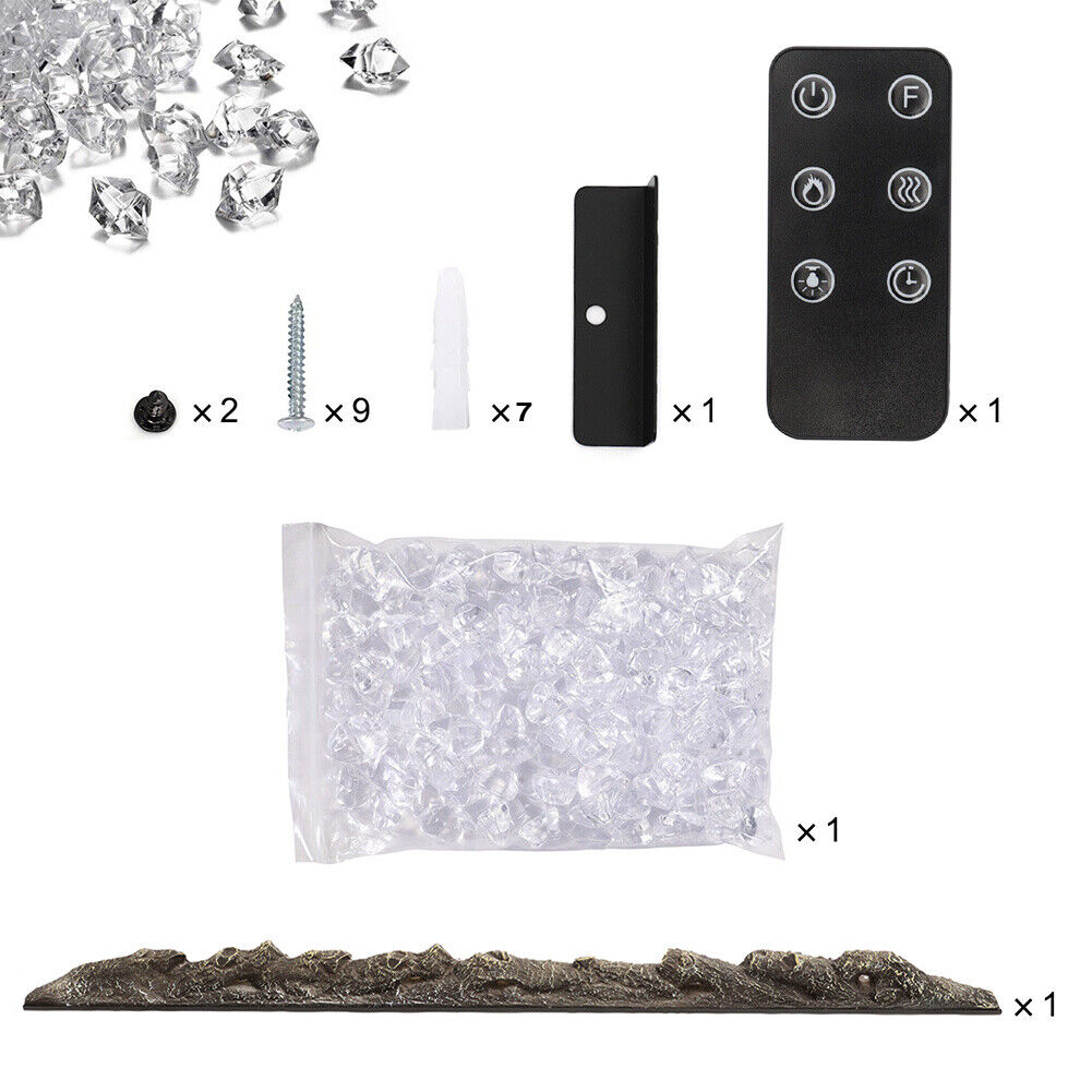 Adjustable Brightness, Adjustable Flame Colors, Adjustable Thermostat, LED Flames, On/Off Switch, Remote Control, Timer, Wall-Mountable, LCD Display, Crystal and Log Effect Fire Ormaments Included, With Wall Bracket