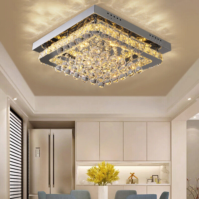 40/50cm Flush Mount Modern Square Ceiling Chandelier Crystal Light Lamp Pendant