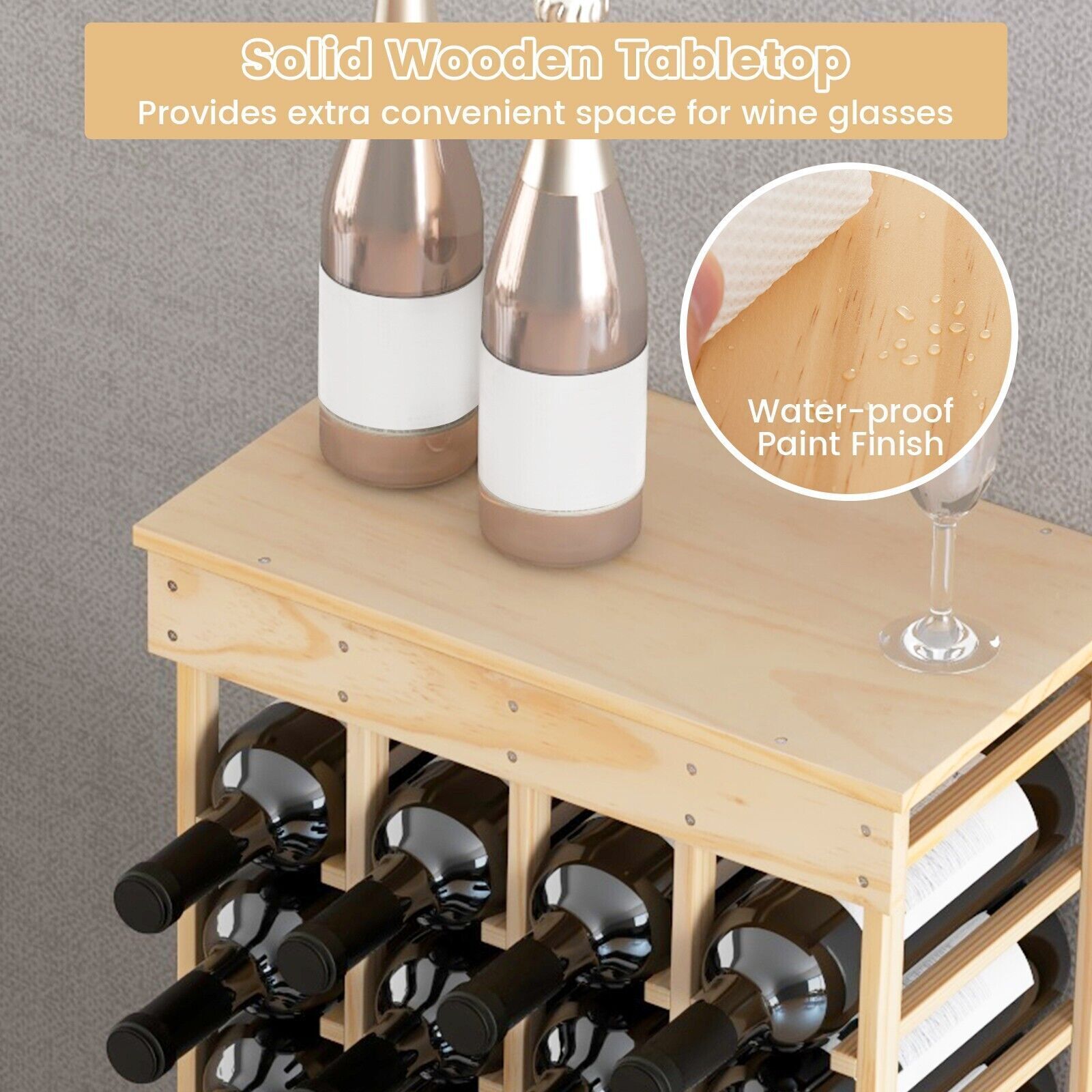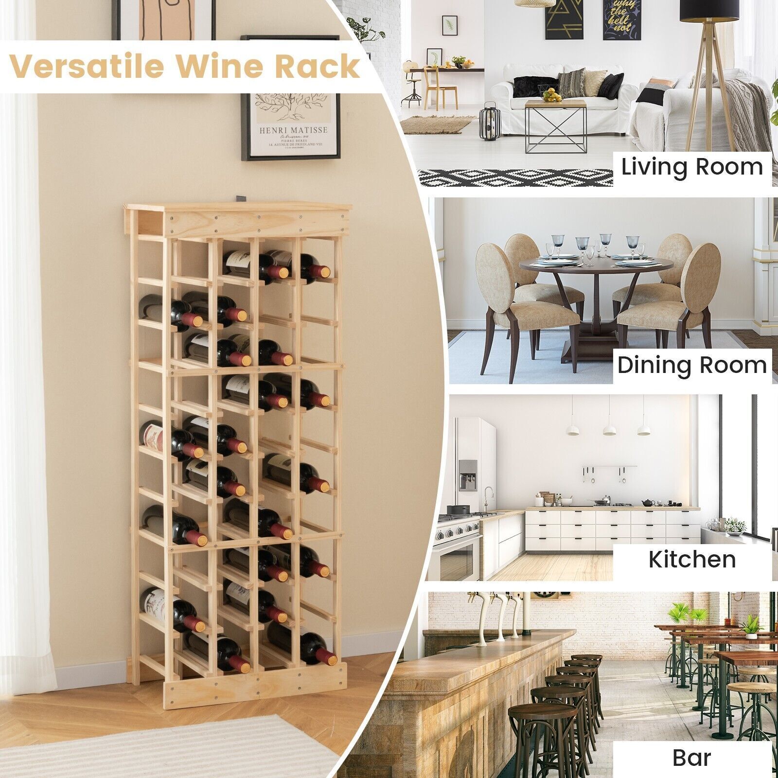 40 Bottles Storage Wine Rack Freestanding Pine Wood Display Shelf Wine Holder