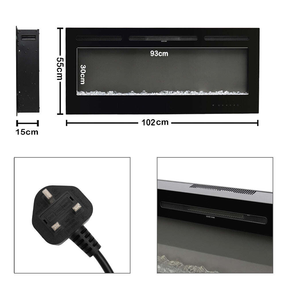 40'' Electric LED Fireplace Wall Inset/Wall Mount Heater Digital 9 Colours Flame