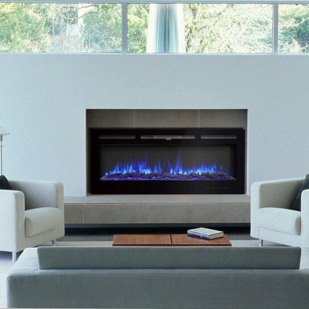 40 INCH BLACK RECESS INSERT FIRE WALL MOUNTED ELECTRIC FIREPLACE GLASS 1020 x550