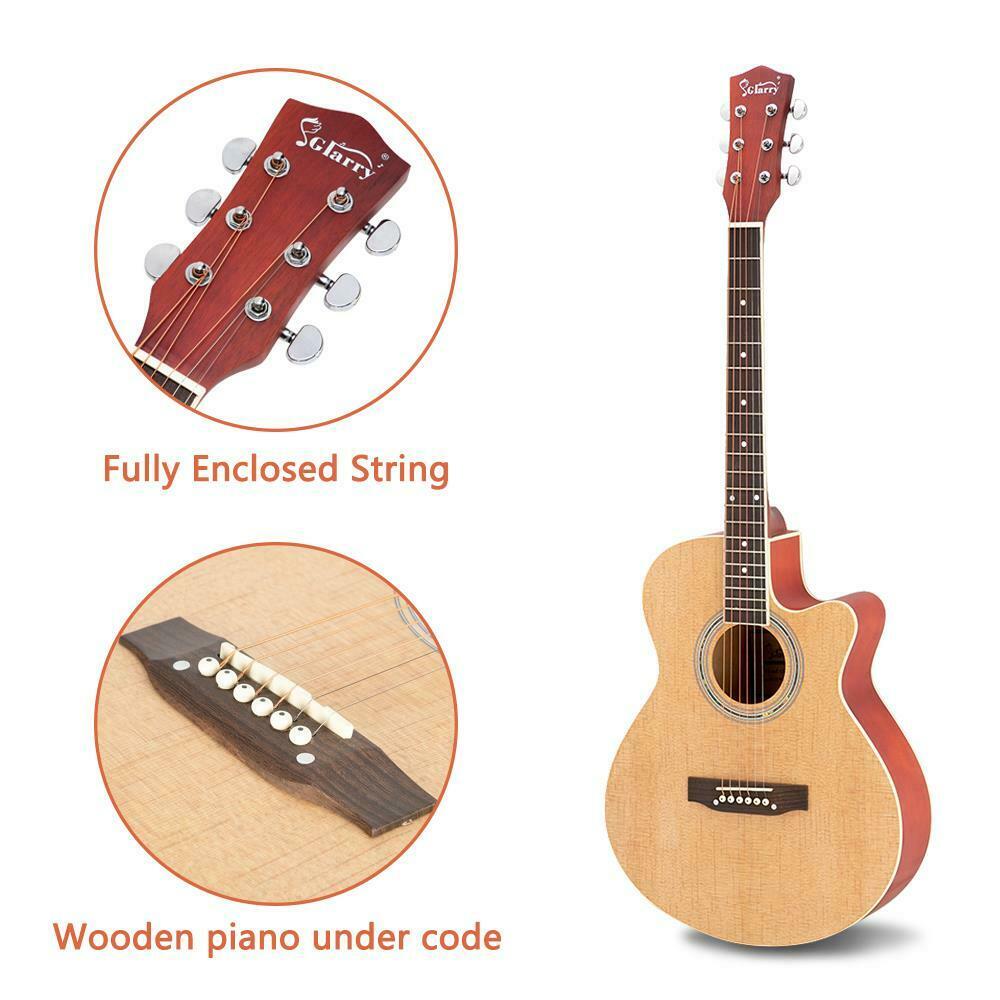 40" Natural Beginner Practice Spruce Front Cutaway Folk Acoustic Guitar w/ Bag