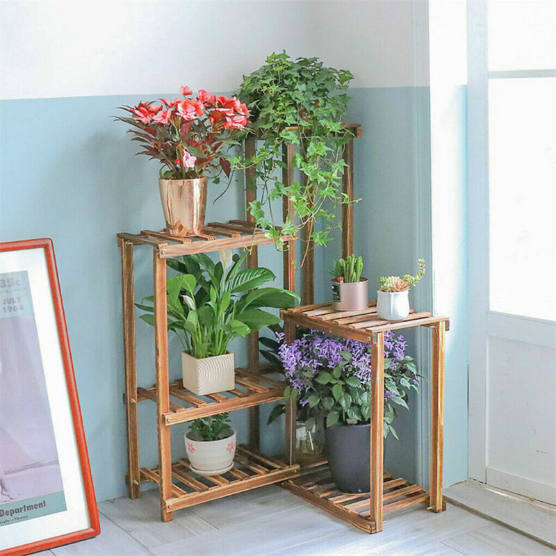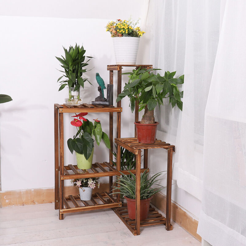 40" Tall Corner Wood Plant Stand Potted Flower Shelves Home Office Lawn Window