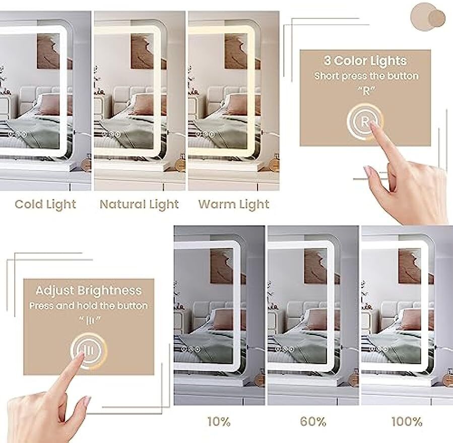 40 x 50 cm LED Hollywood Vanity Mirror Light 3 Color Modes Dimmable Strip Light