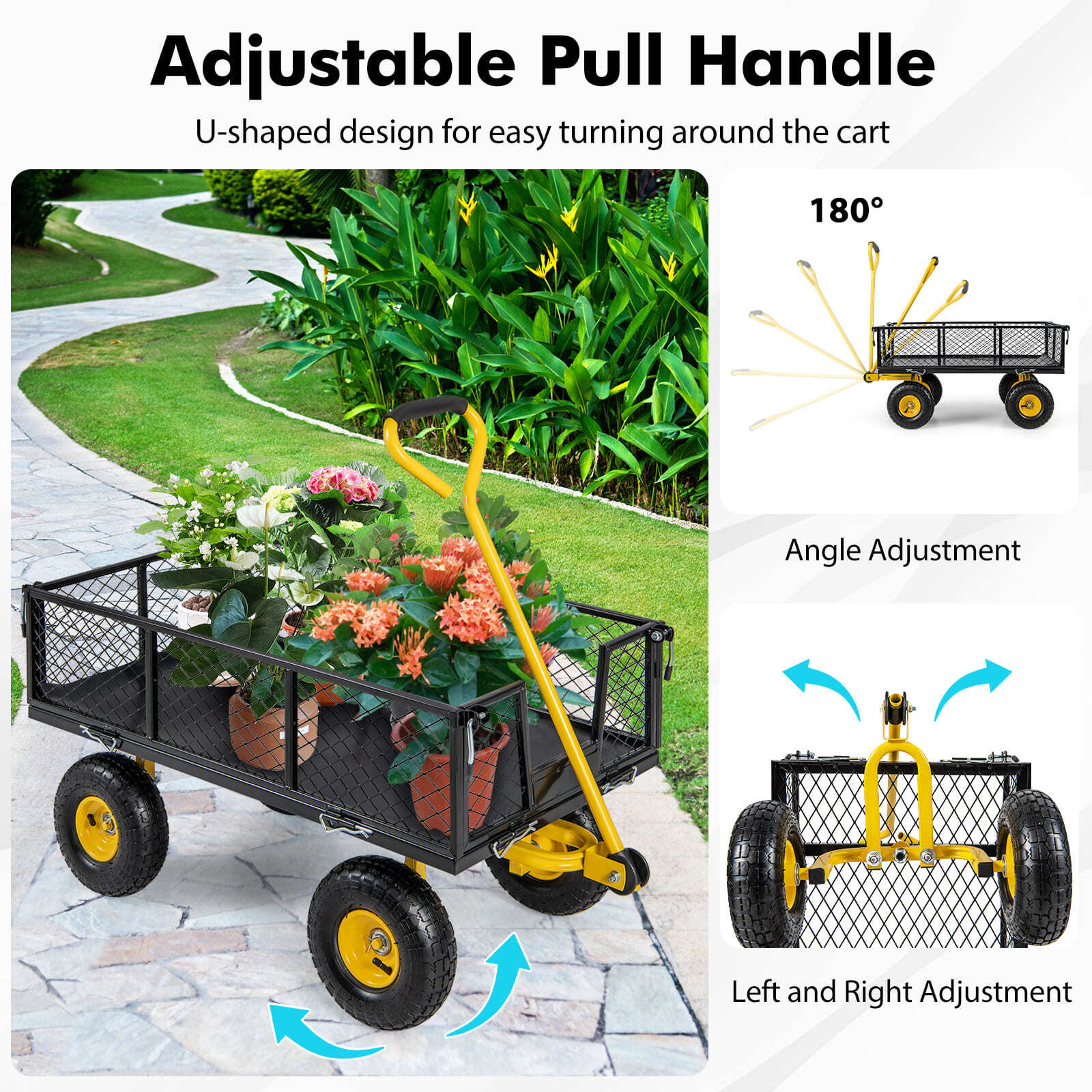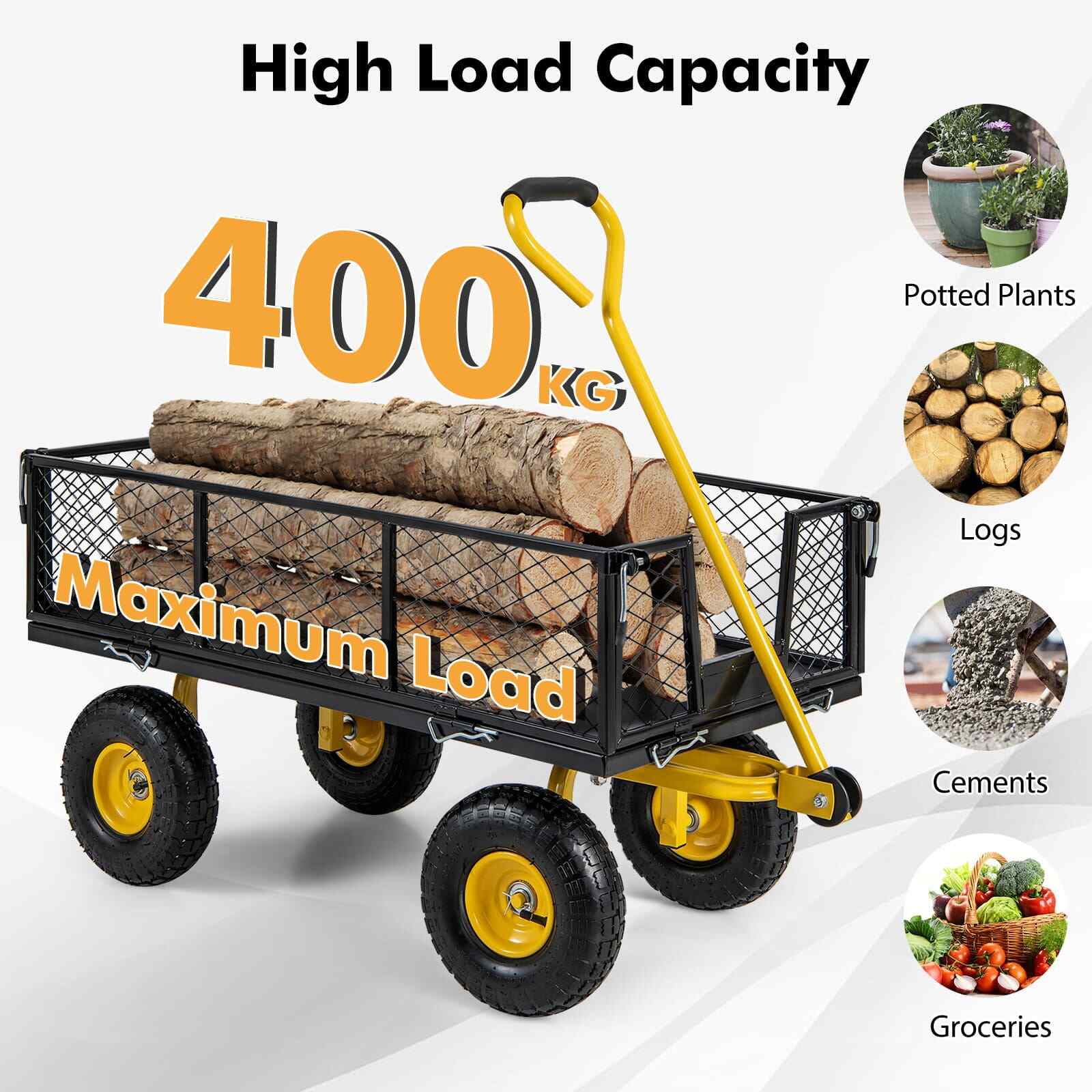 400 kg Utility Metal Wagon Utility Garden Cart with 26 cm Wheels-Black