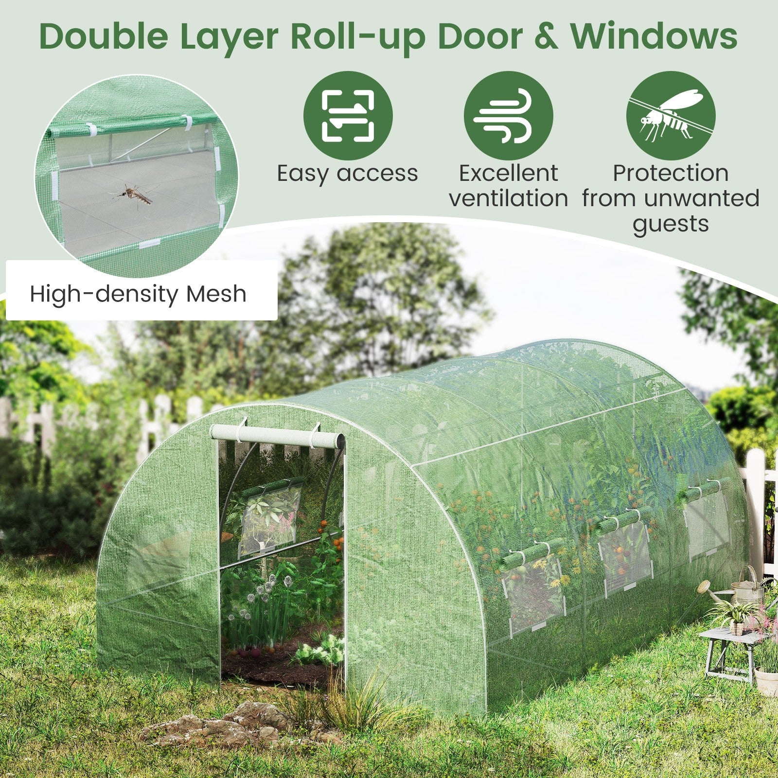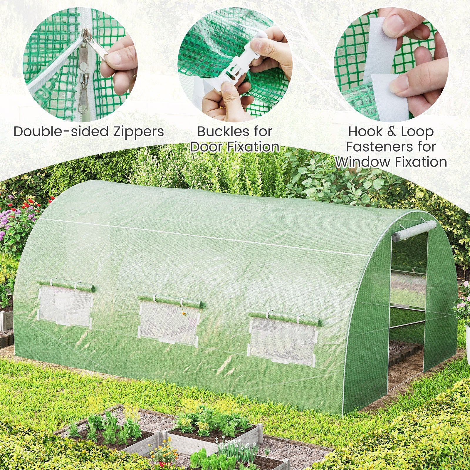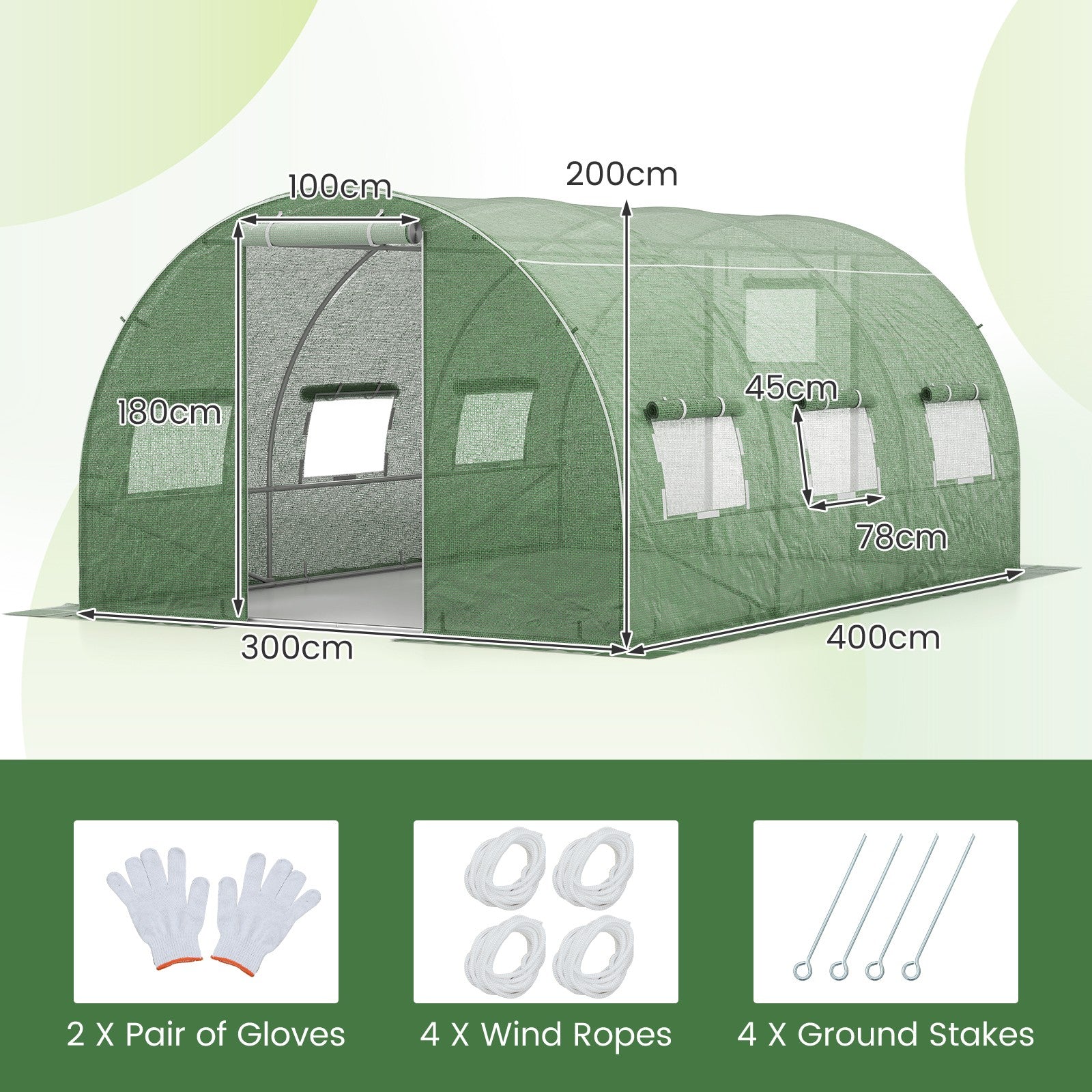 400 x 300 x 200 cm Outdoor Walk-in Tunnel Greenhouse-Green