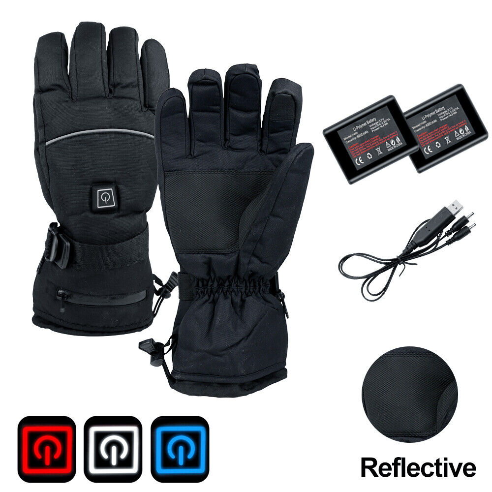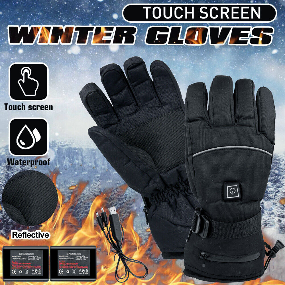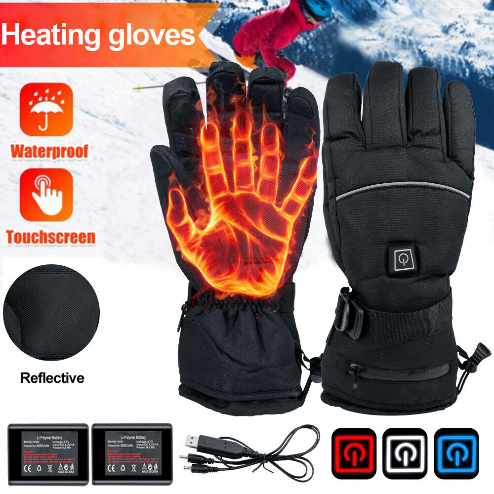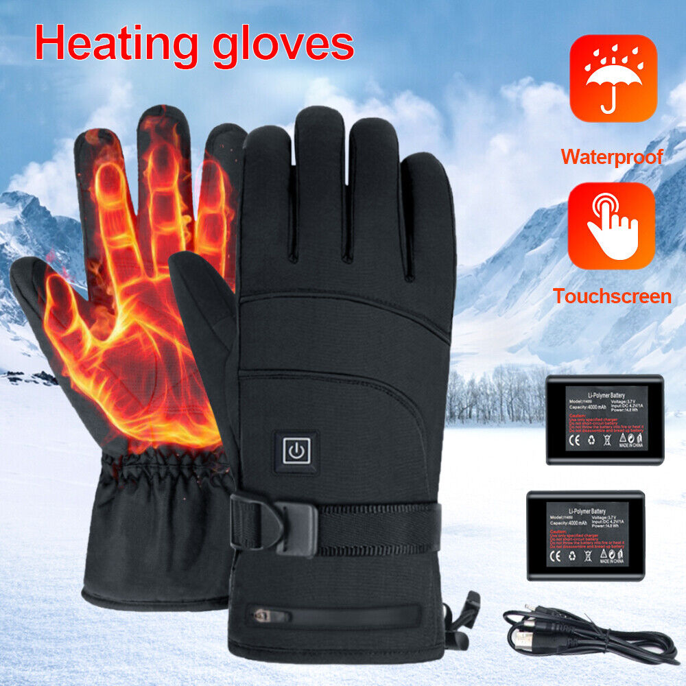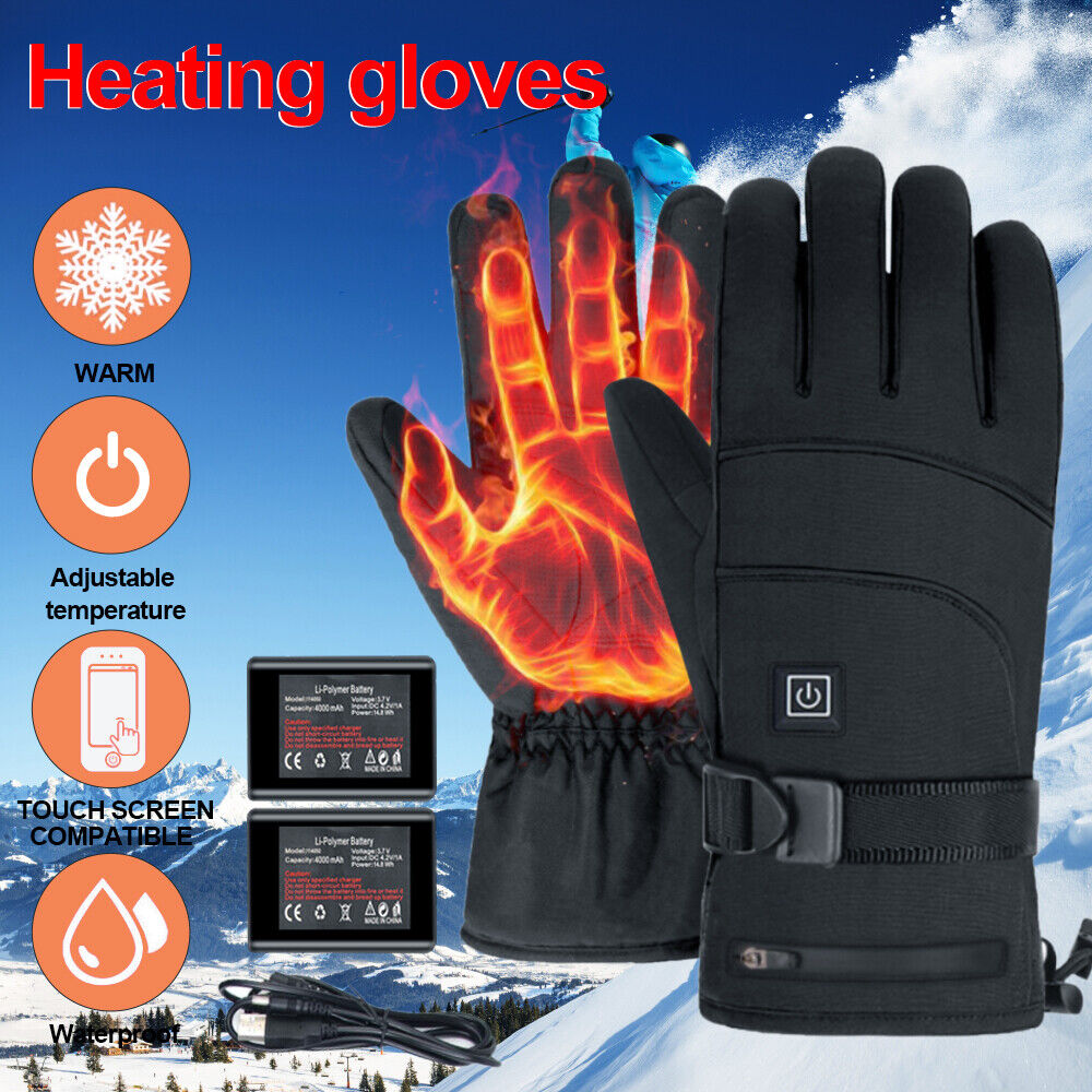 4000mAh Electric USB Heated Gloves Rechargeable Touch Screen Men Motorcycle Gear