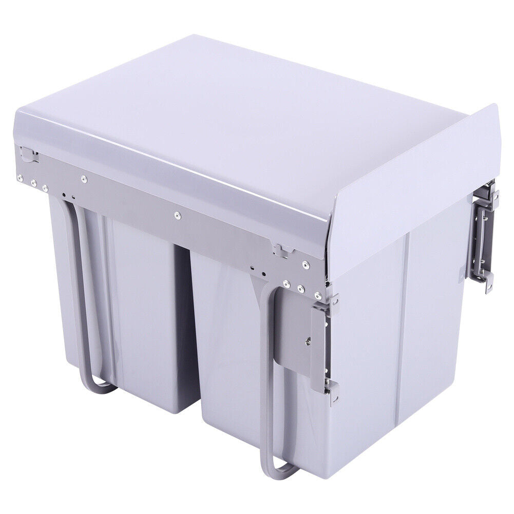 400mm Door Cabinet Waste Bin Grey Recycling Base Mounted Soft Close Pull Out 40L