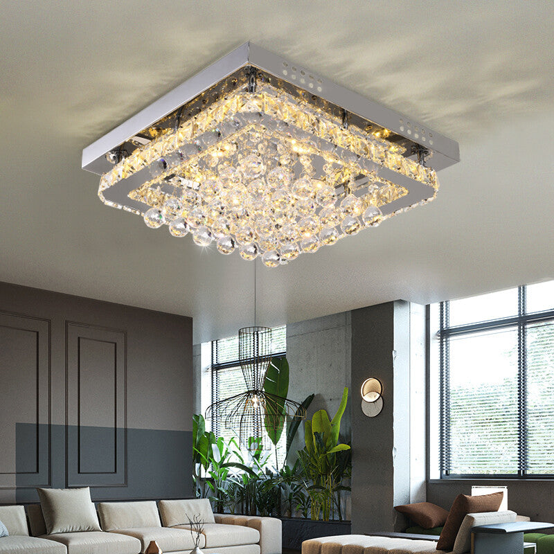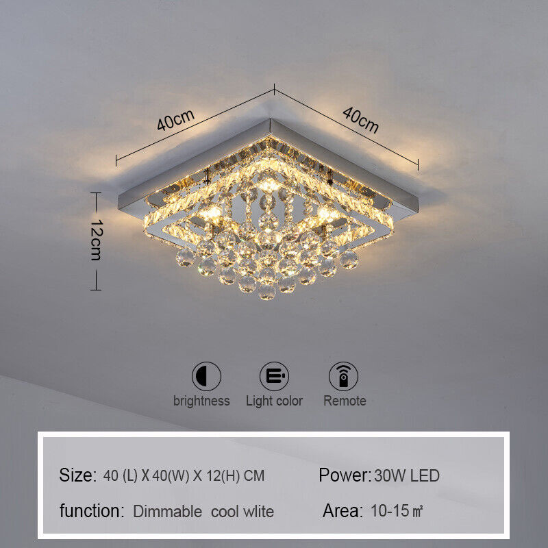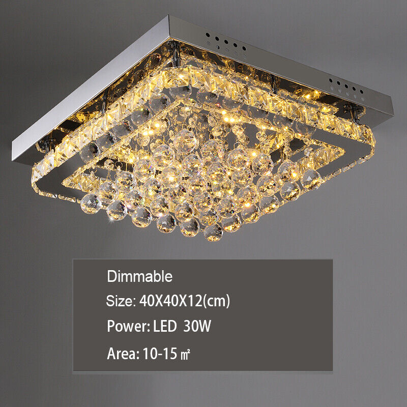 40cm Crystal Chandelier Lamp LED Square Crystal Ceiling Light Dimmable w/ Remote