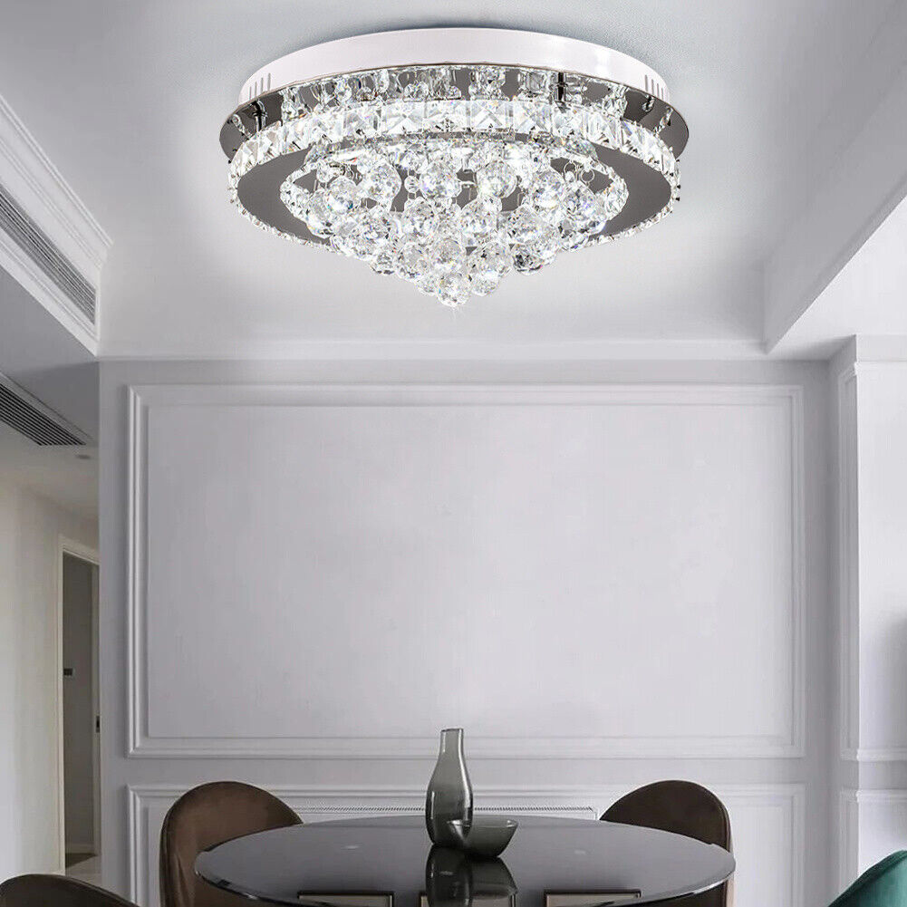 40cm Flush Mount Modern Round LED Ceiling Chandelier Crystal Light Lamp Pendant