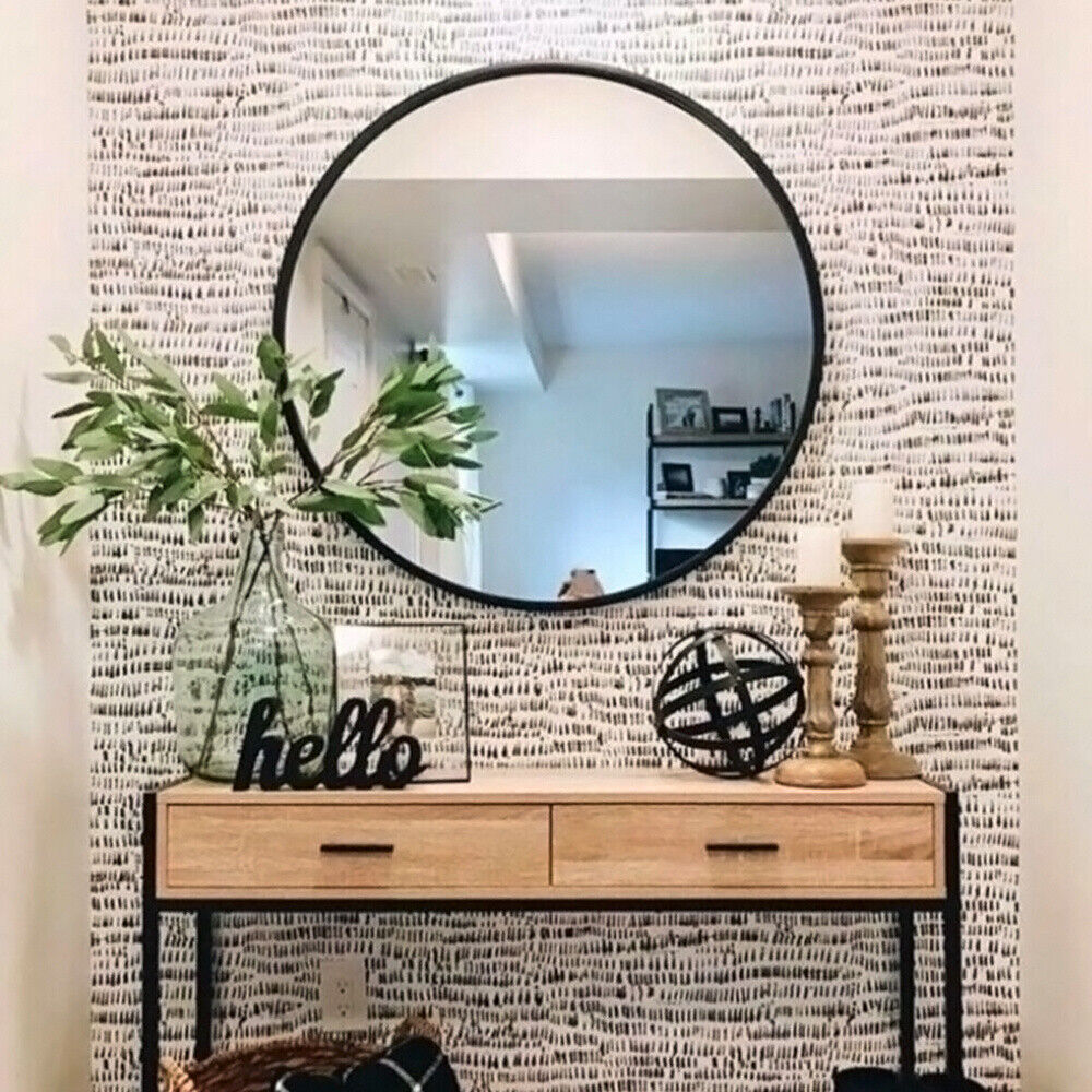 40cm Round Black Metal Frame Wall Mirror Bathroom Bedroom Makeup Vanity Mirrors