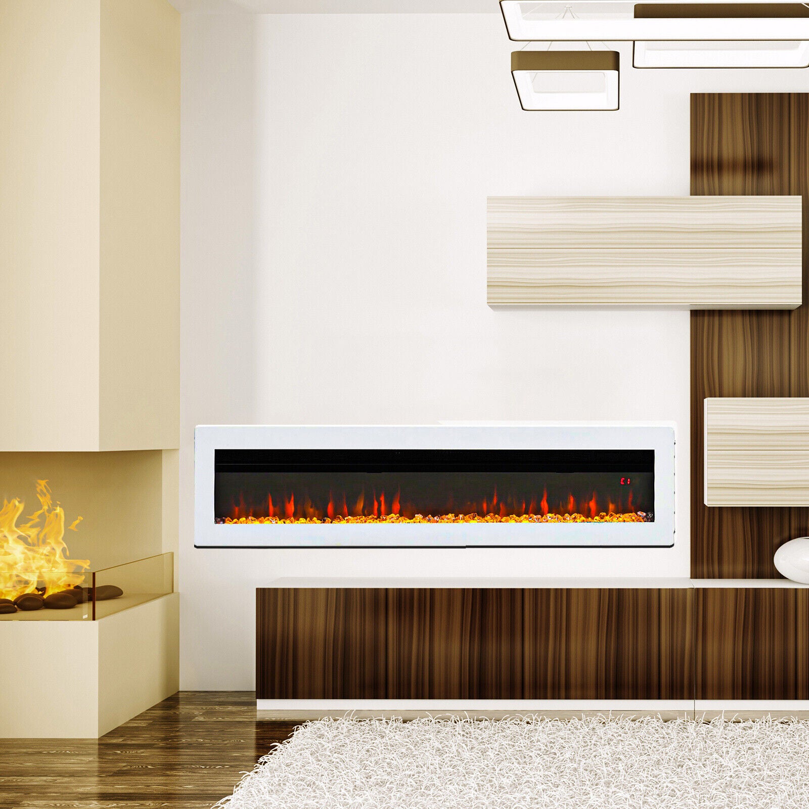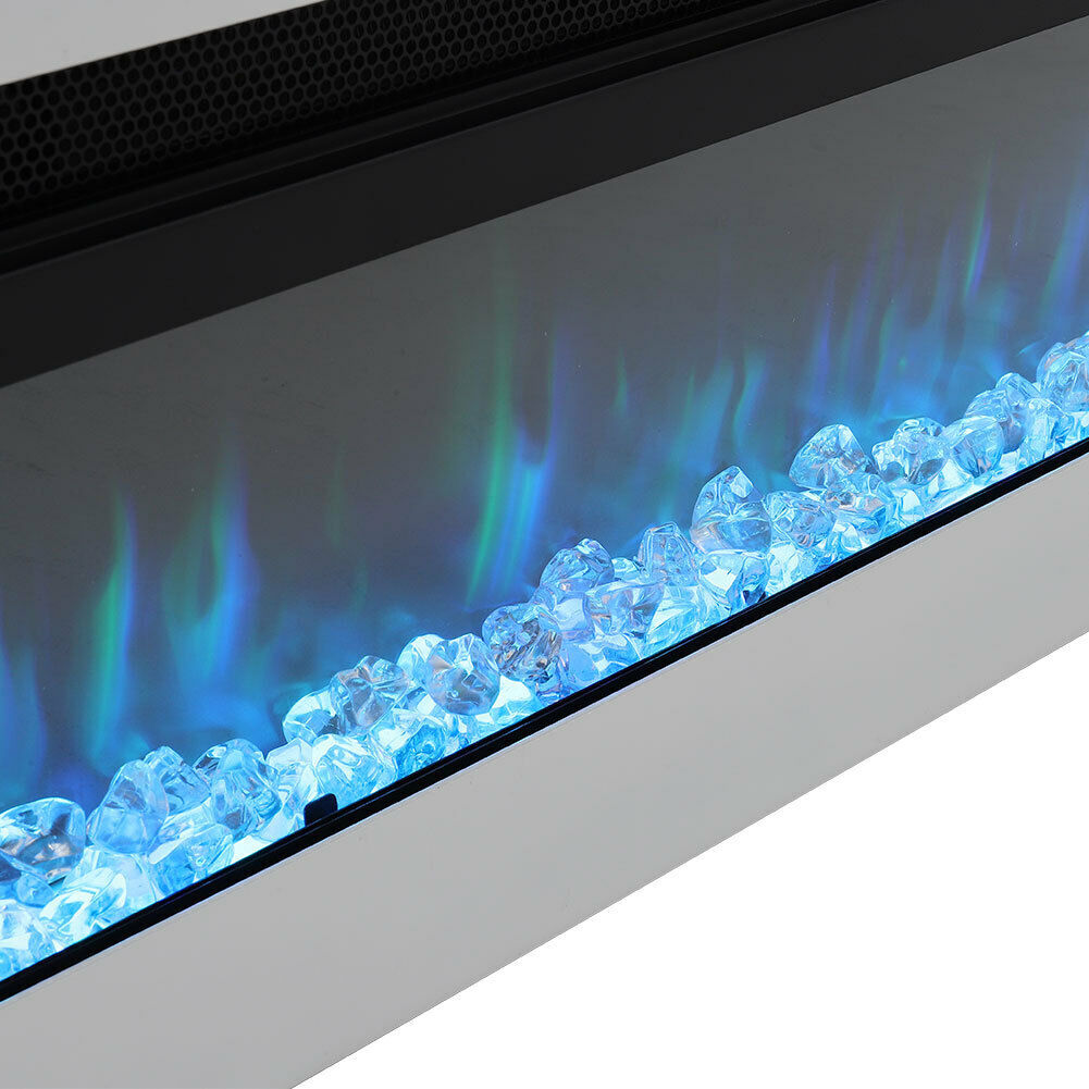 Adjustable Brightness, Adjustable Flame Colors, Adjustable Thermostat, LED Flames, On/Off Switch, Remote Control, Timer, LCD Display, With Natural Pebbles, With Wall Bracket, Wall Mounted, Inset / Freestanding, Crystal Effect Fire Inlcuded