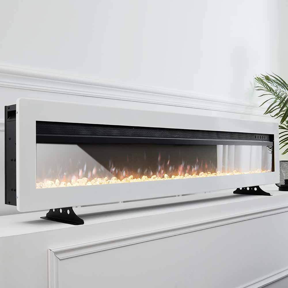 Features Adjustable Brightness, Adjustable Flame Colors, Adjustable Thermostat, LED Flames, On/Off Switch, Remote Control, Timer, LCD Display, With Natural Pebbles, With Wall Bracket, Wall Mounted, Inset / Freestanding, Crystal Effect Fire Inlcuded