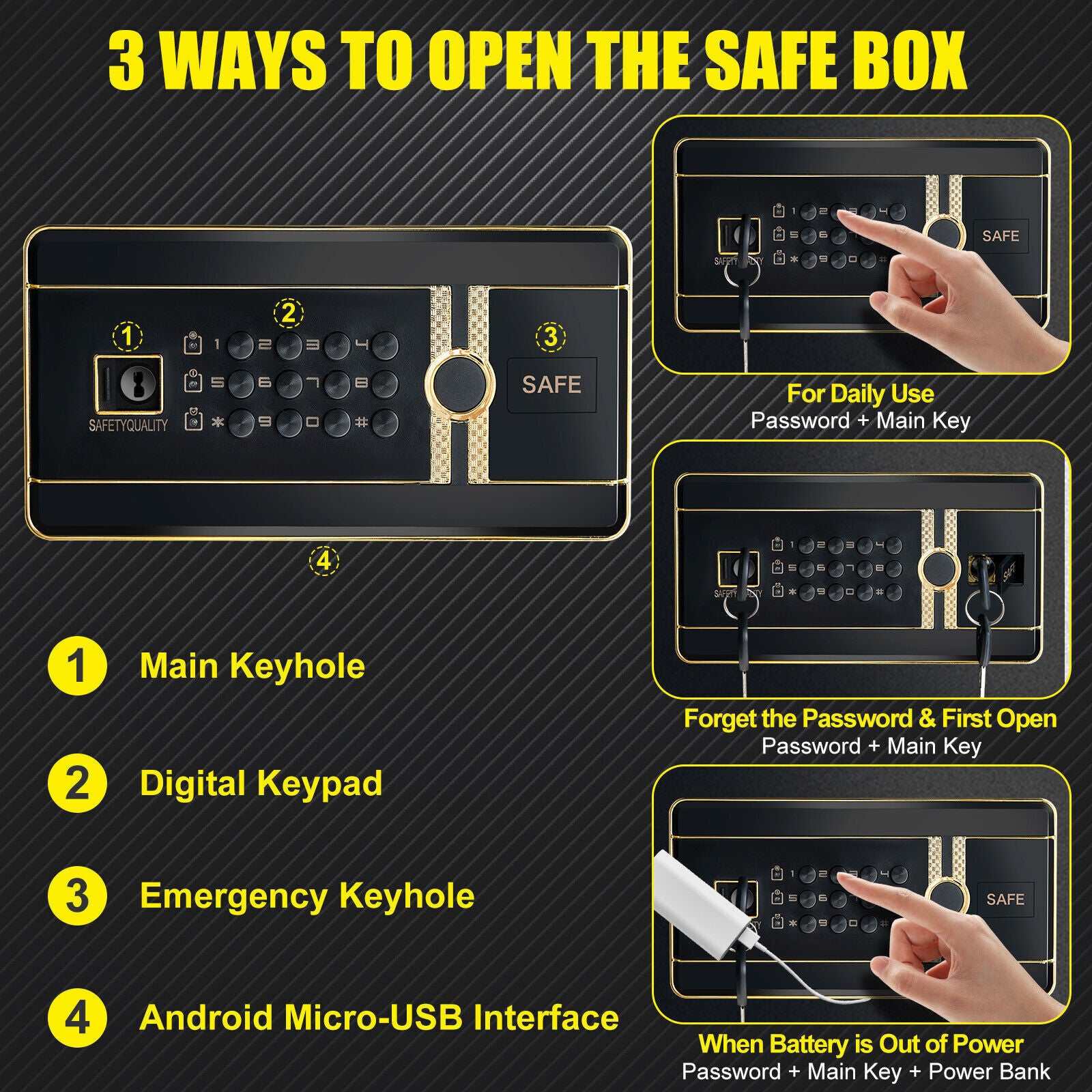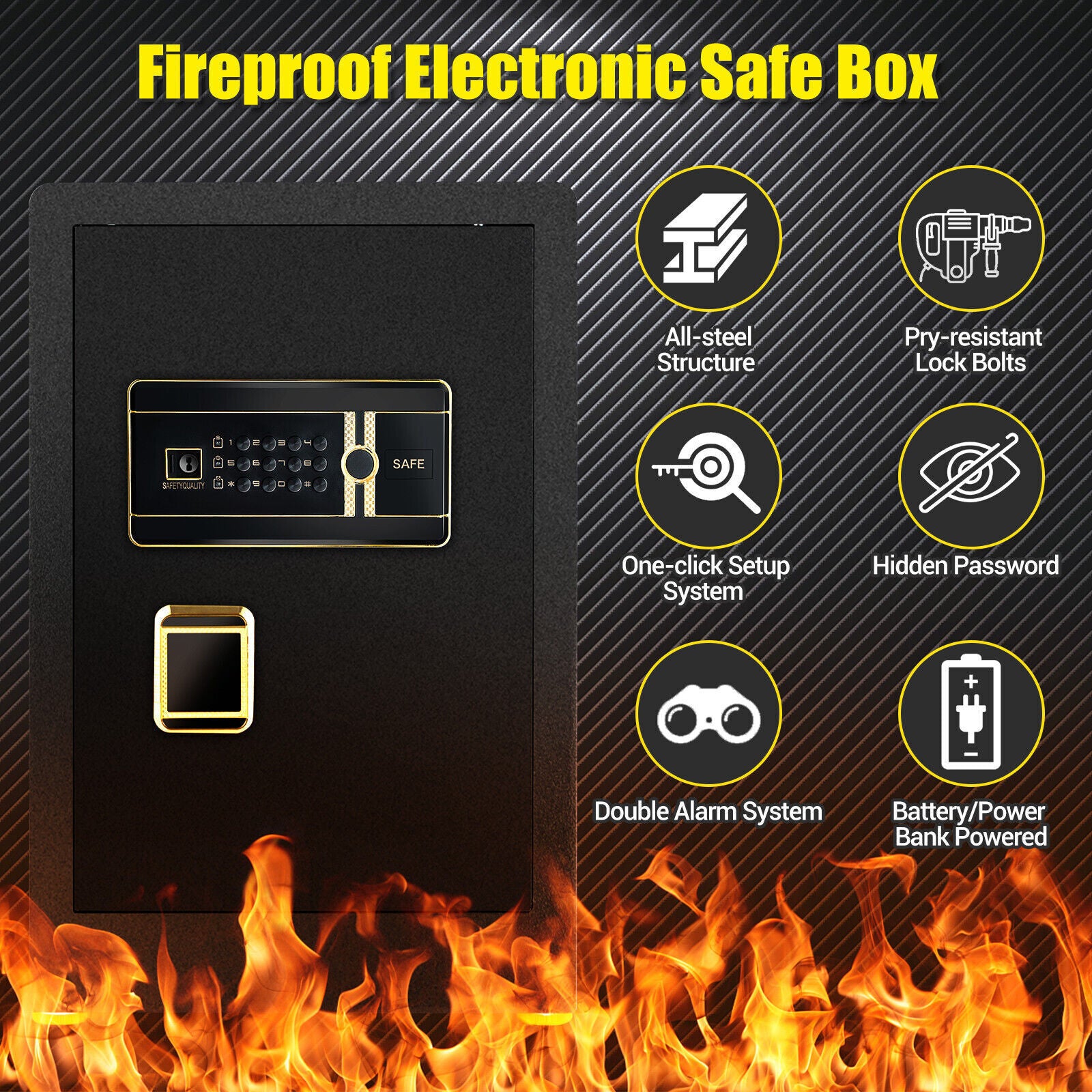 40L Safe Box Home Money Safe w/ Double Safety Key Lock & Built-in Cabinet Box
