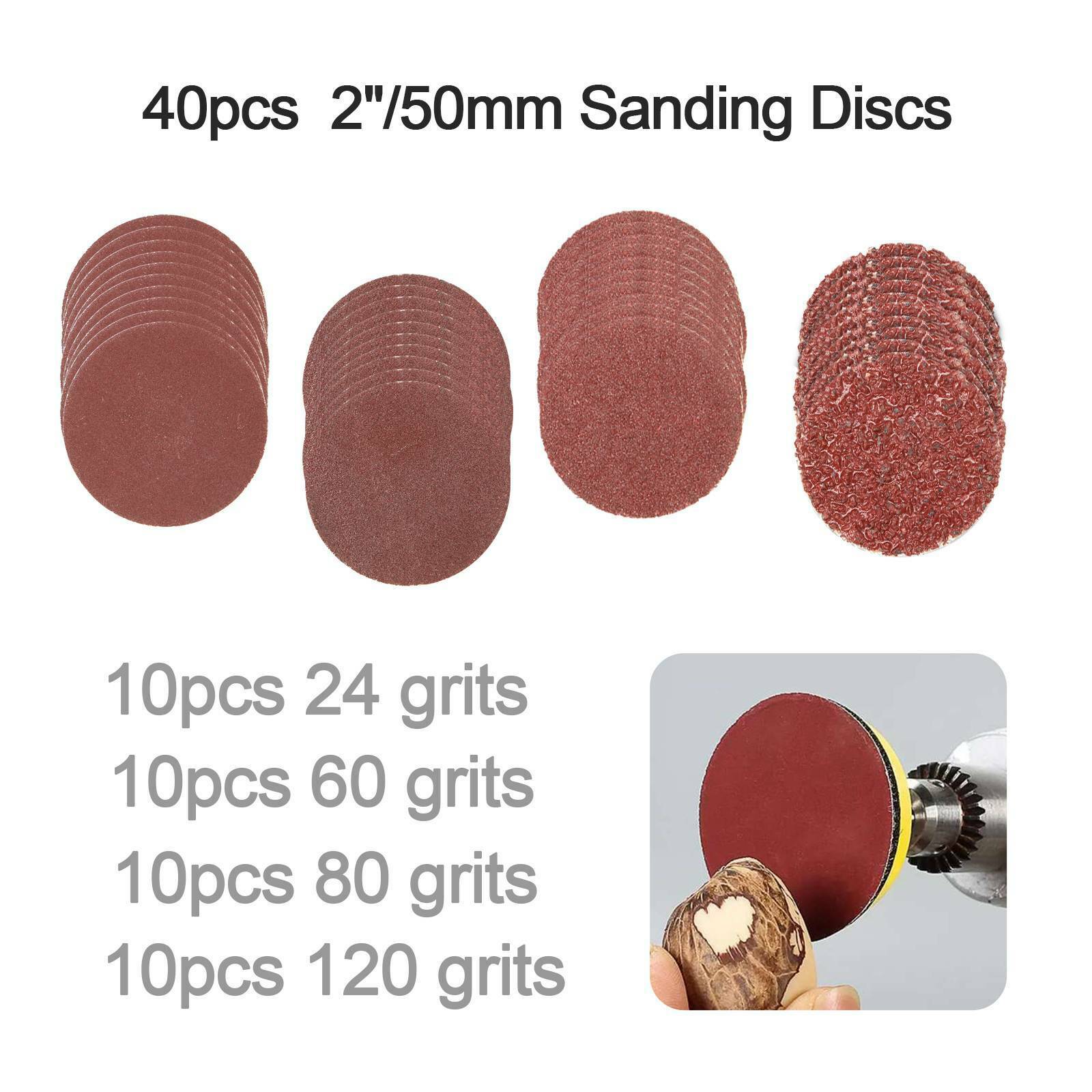 40x 2'' 50mm Sanding Discs Pad 24/60/80/120 Grit Abrasive Roll Lock UK