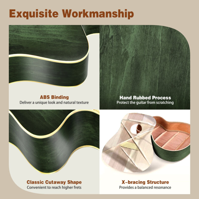 41” Full Size Cutaway Acoustic Guitar Set Starter Guitarra Bundle Kit Kids Adult