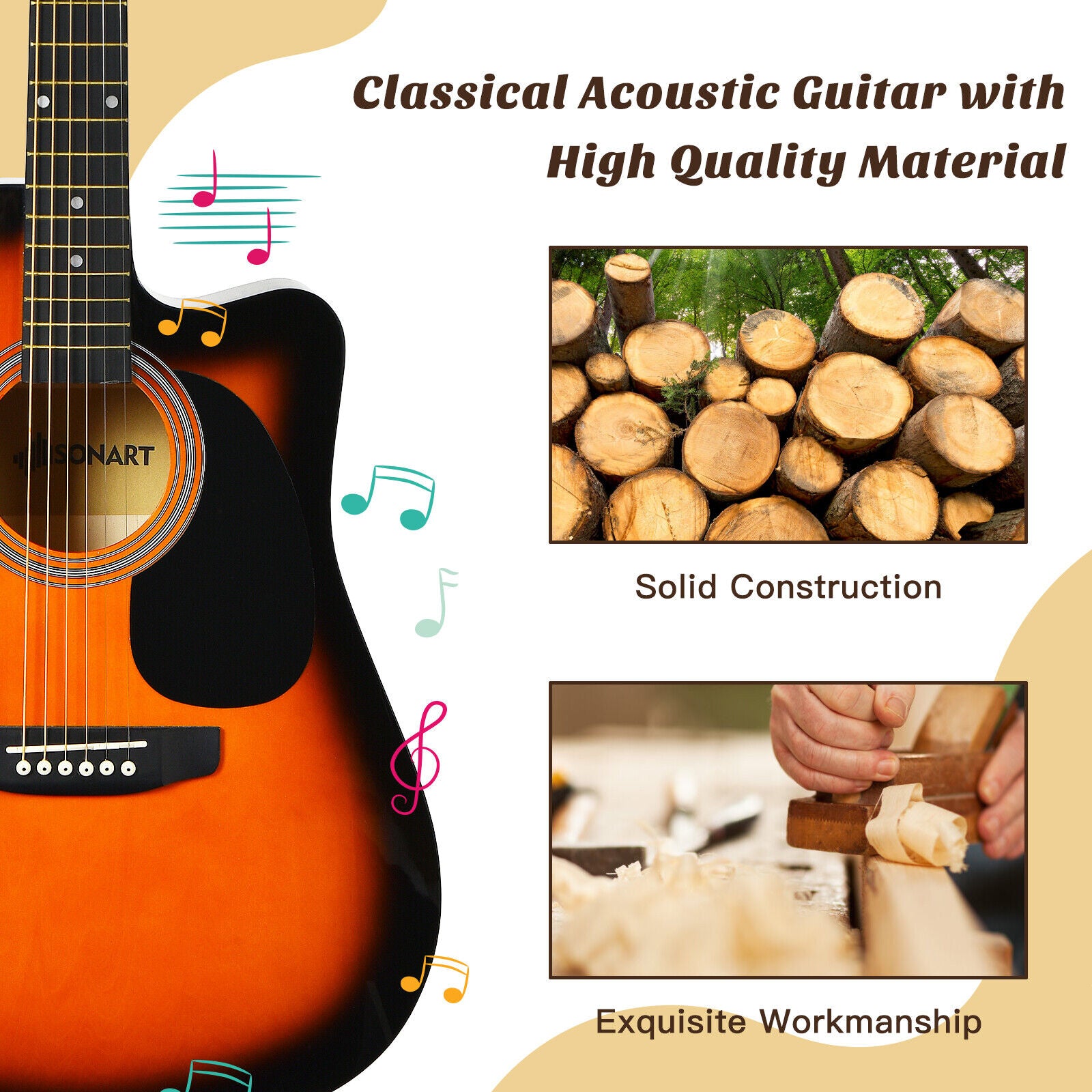 41 Inch Full Size Steel-String Guitar Acoustic Guitar with Gig Bag Tuner Pick