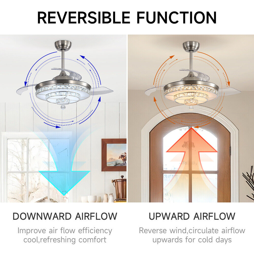 42" Ceiling Fan Light with Remote Control 3 Colour LED Invisible Fan Chandelier