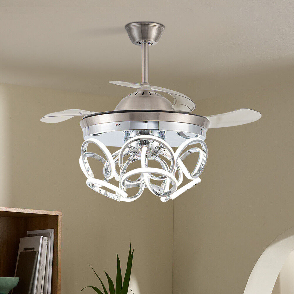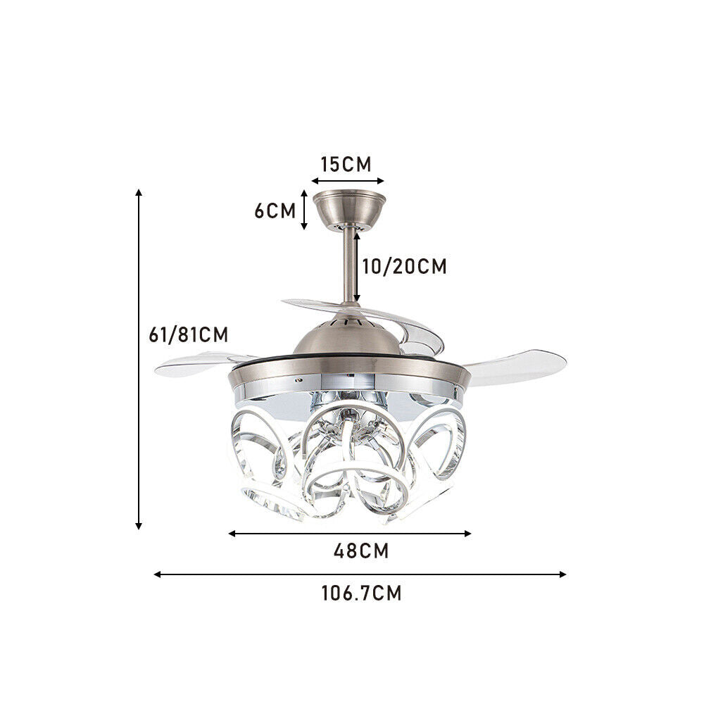 42 Inch Modern Invisible LED Ceiling Fan Light 3 Colour Changing Chandelier Lamp
