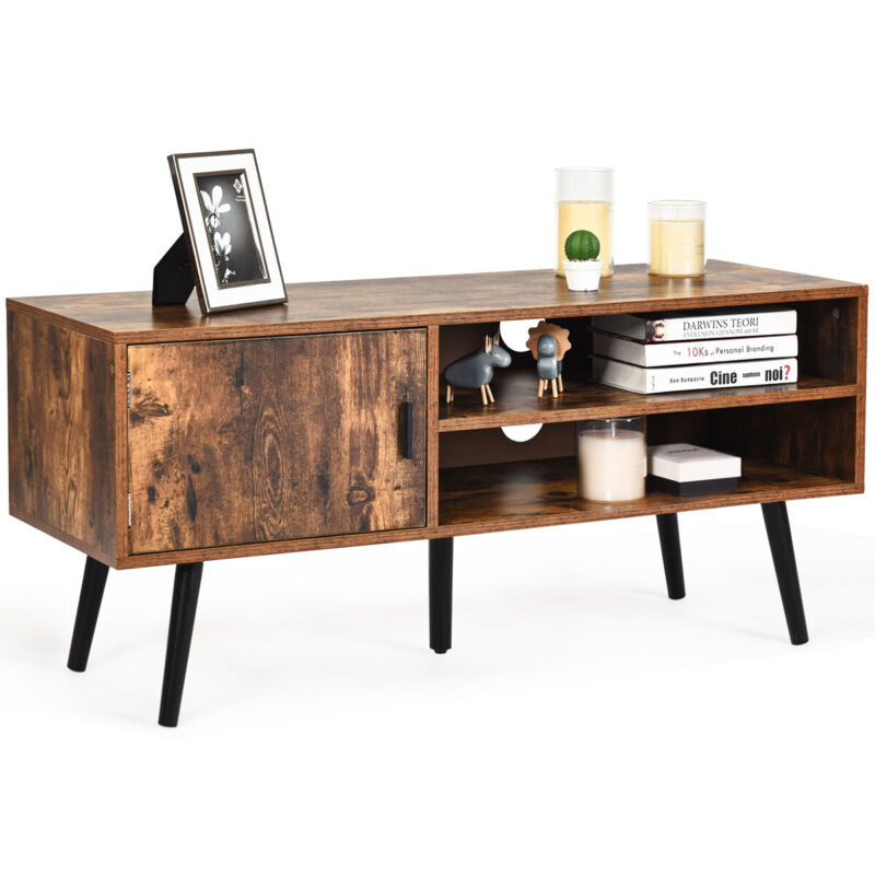 42'' Large TV Stand Industrial Home Entertainment Unit Shelves W/ Side Cabinet
