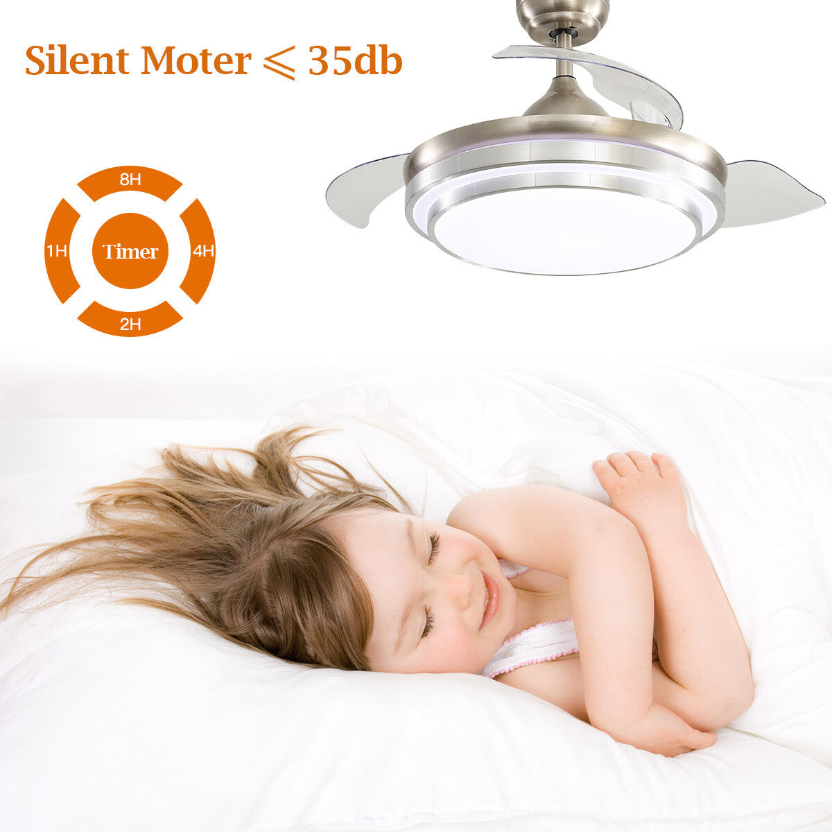 42" LED Ceiling Fan Light Dimmable Living Room Chandelier Lamp W/ Remote Control