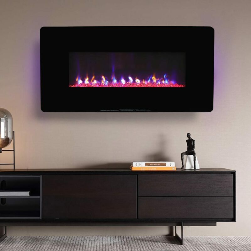 Adjustable Flame Colors, LED Flames, Remote Control, Timer, Wall-Mountable