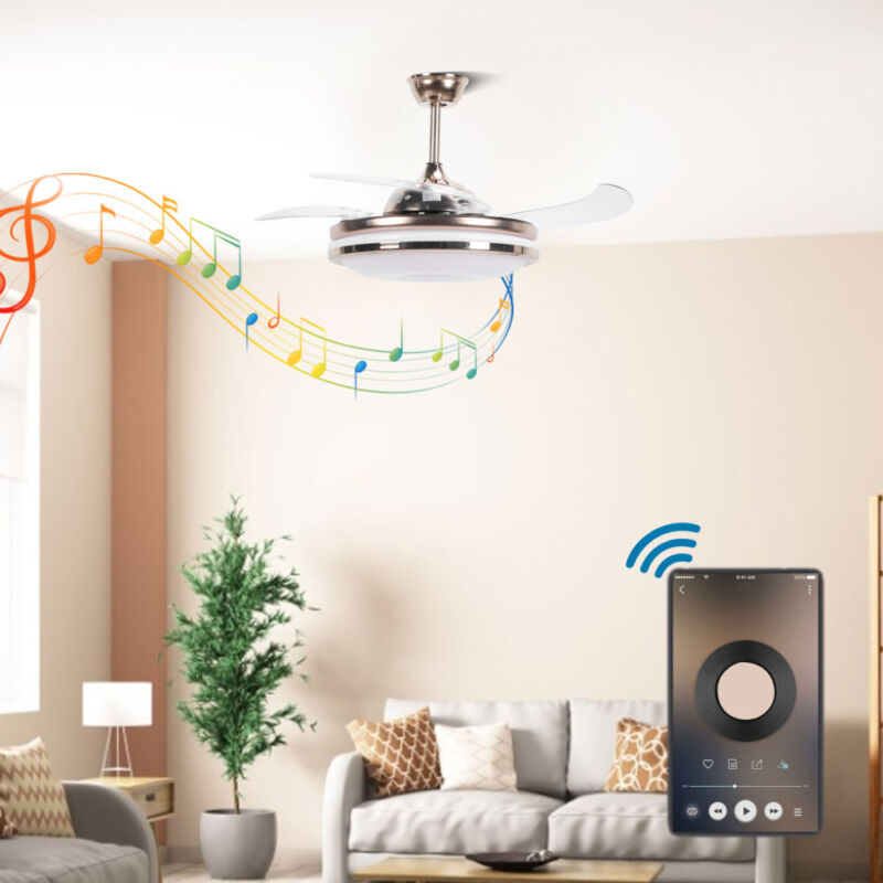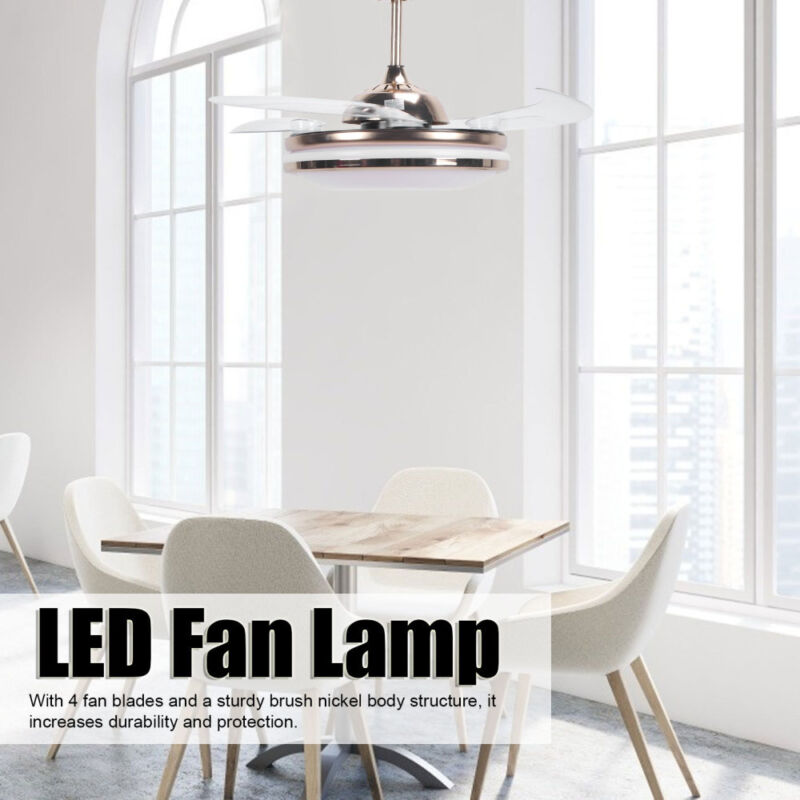 42Inch Dimmable Light Chandelier 4 Invisible Blades Ceiling Fan w/Remote Control