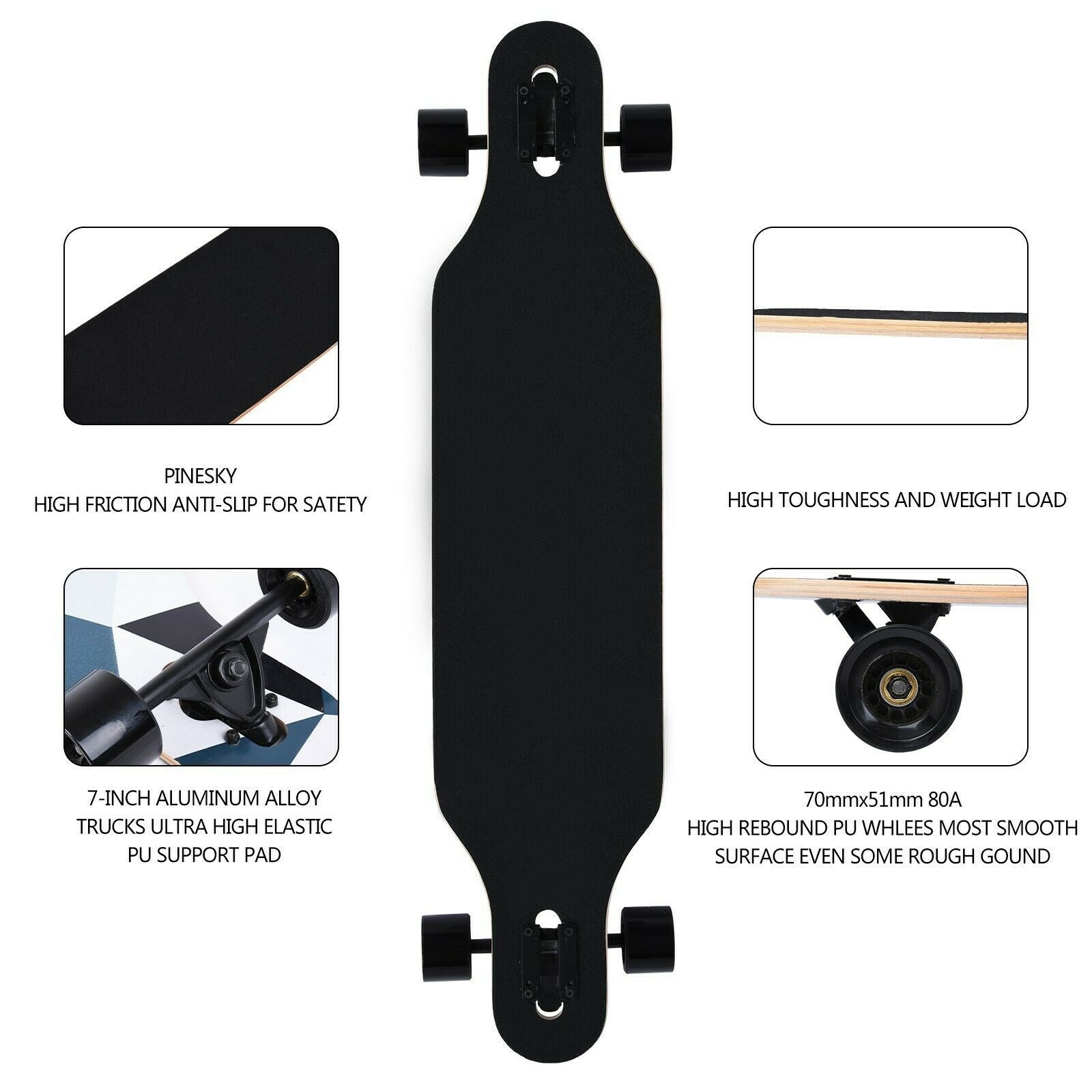 42"Maple Longboard Professional Road Skateboard Drop Through Complete Skateboard