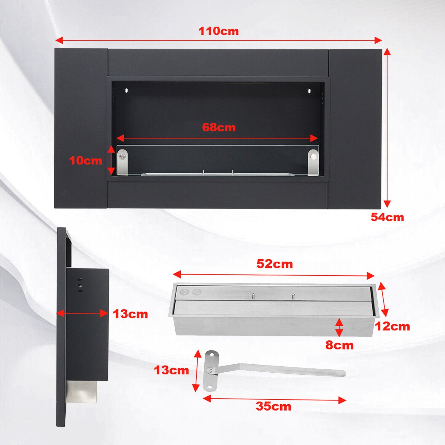 43" Bio Ethanol Fireplace Biofire Fire Wall Mounted/Recessed/Inset Burner +Glass